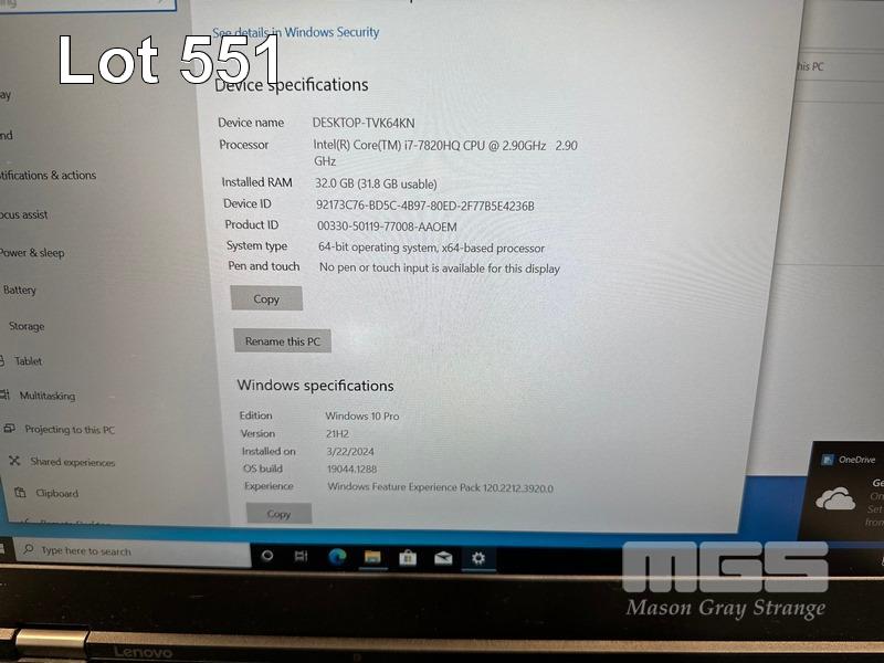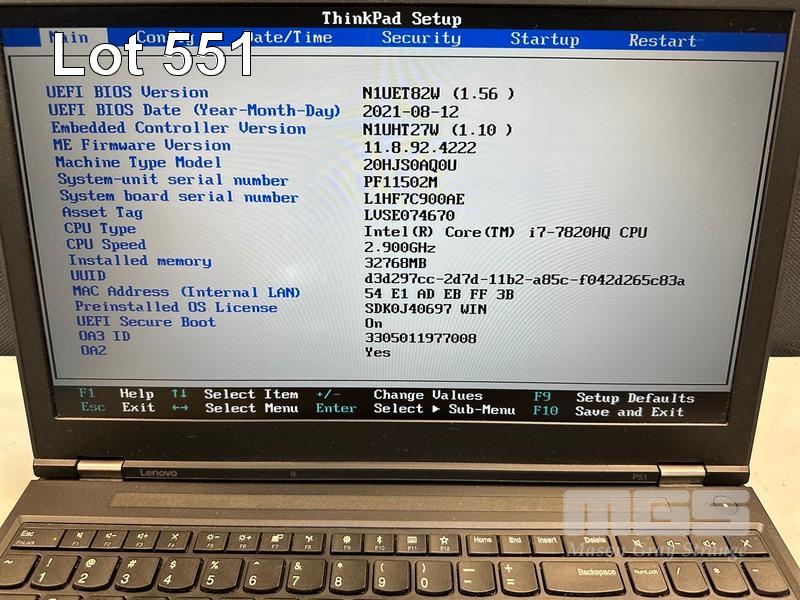 LAPTOP, LENOVO THINKPAD P51 MOBILE WORKSTATION, TYPE 20HJ, CORE i7 7820HQ (7TH GEN) @ 2.9GHz, 32GB DDR4 RAM, 512GB NVMe M.2 SSD, 15.6" WIDESCREEN (1920x1080), 4GB NVIDIA QUADRO M2200 VIDEO, Wi-Fi, BLUETOOTH, WINDOWS 10 PRO INSTALLED & POWER SUPPLY (NOTE: BRIGHT SPOT ON SCREEN, MINOR MARKS ON SCREEN) S/N:PF11502M
