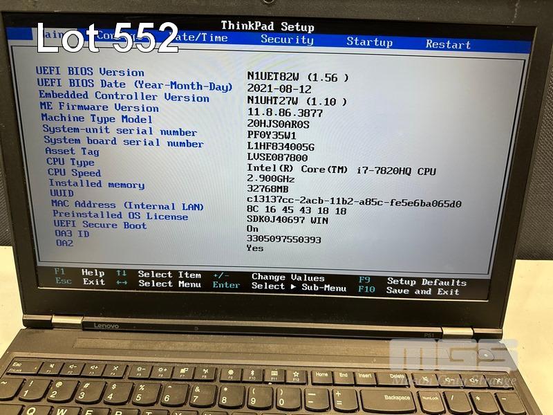 LAPTOP, LENOVO THINKPAD P51 MOBILE WORKSTATION, TYPE 20HJ, CORE i7 7820HQ (7TH GEN) @ 2.9GHz, 32GB DDR4 RAM, 512GB NVMe M.2 SSD, 15.6" WIDESCREEN (1920x1080), 4GB NVIDIA QUADRO M2200 VIDEO, Wi-Fi, BLUETOOTH, WINDOWS 10 PRO INSTALLED & POWER SUPPLY (NOTE: MARKS ON SCREEN) S/N:PF0Y35W1
