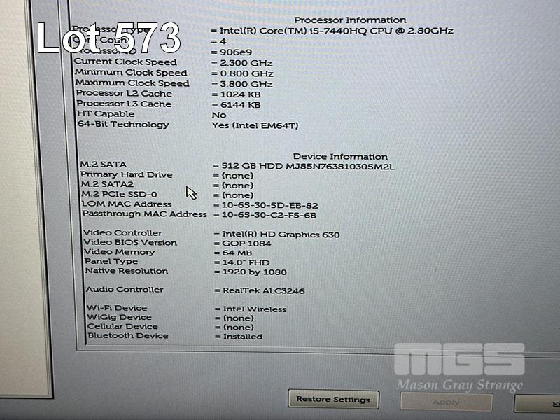LAPTOP, DELL LATITUDE 5480, CORE i5 7440HQ (7TH GEN) @ 2.8GHz, 8GB DDR4 RAM, 512GB M.2 SSD, 14" WIDESCREEN (1920x1080), INTEL HD GRAPHICS 630, Wi-Fi, BLUETOOTH, WINDOWS 10 HOME INSTALLED & POWER SUPPLY S/N:7ZFDVP2
