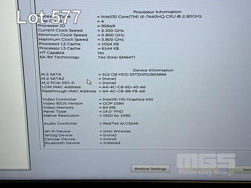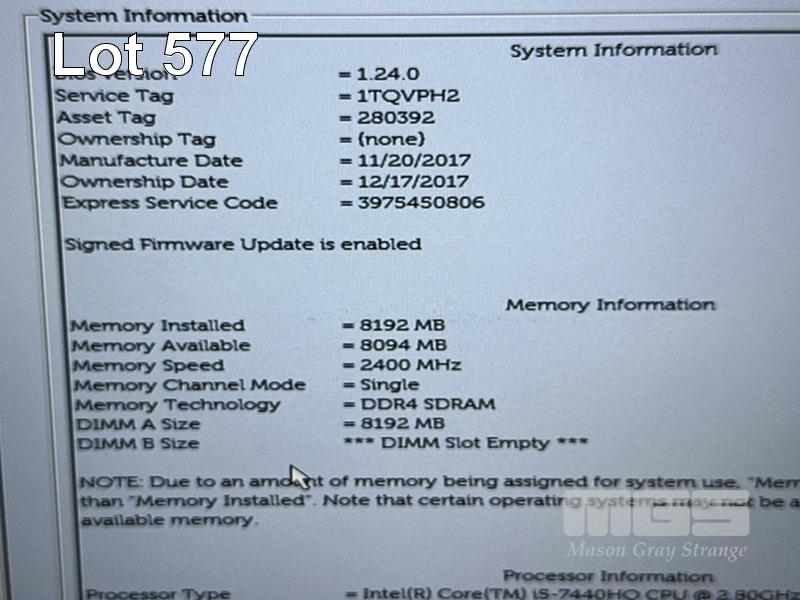 LAPTOP, DELL LATITUDE 5480, CORE i5 7440HQ (7TH GEN) @ 2.8GHz, 8GB DDR4 RAM, 512GB M.2 SSD, 14" WIDESCREEN (1920x1080), INTEL HD GRAPHICS 630, Wi-Fi, BLUETOOTH, WINDOWS 10 HOME INSTALLED & POWER SUPPLY (NOTE: MARKS ON SCREEN) S/N:1TQVPH2