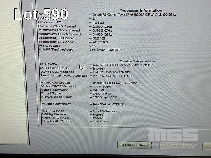 LAPTOP, DELL LATITUDE 7480, CORE i7 6600U (6TH GEN) @ 2.6GHz, 16GB DDR4 RAM, 512GB M.2 SSD, 14" WIDESCREEN (1920x1080), INTEL HD GRAPHICS 520, Wi-Fi, BLUETOOTH, WINDOWS 10 HOME INSTALLED & POWER SUPPLY S/N:3MWN5H2
