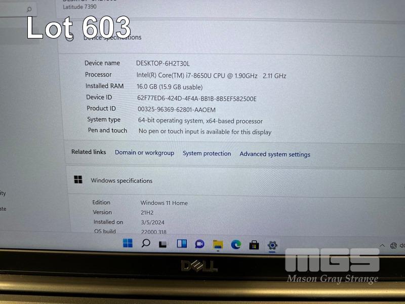 LAPTOP, DELL LATITUDE 7390, CORE i7 8650U (8TH GEN) @ 1.9GHz, 16GB DDR4 RAM, 512GB M.2 SSD, 13.3" WIDESCREEN (1920x1080), INTEL UHD GRAPHICS 620, Wi-Fi, BLUETOOTH, WINDOWS 11 HOME INSTALLED & POWER SUPPLY (NOTE: BATTERY NOT HOLDING CHARGE) S/N:8SVFQQ2