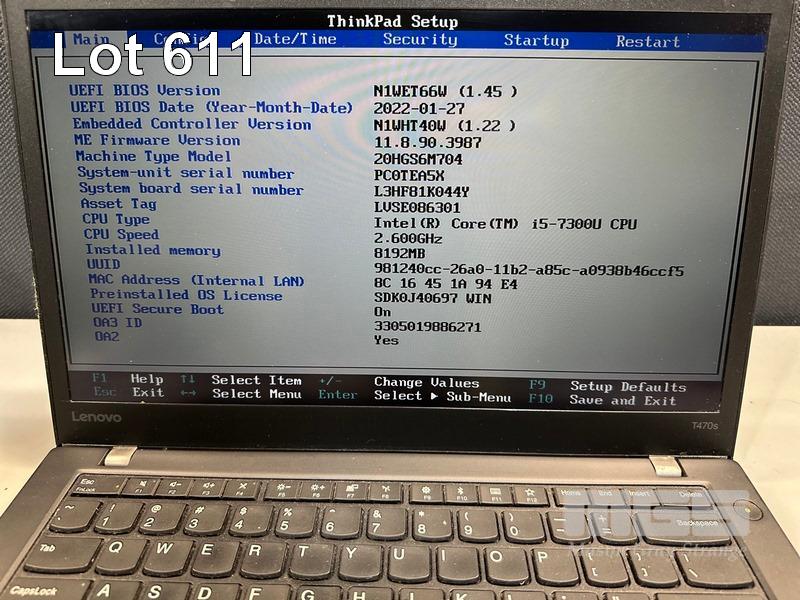 LAPTOP, LENOVO THINKPAD T470s, TYPE 20HG, CORE i5 7300U (7TH GEN) @ 2.6GHz, 8GB DDR4 RAM, 256GB NVMe M.2 SSD, 14" TOUCHSCREEN (1920x1080), INTEL HD VIDEO, Wi-Fi, BLUETOOTH, WINDOWS 10 PRO INSTALLED & POWER SUPPLY (NOTE: MARKS ON SCREEN) S/N:PC0TEA5X