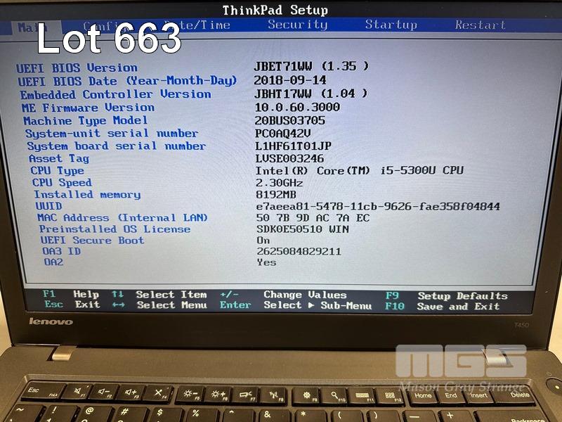 LAPTOP, LENOVO THINKPAD T450, TYPE 20BU, CORE i5 5300U (5TH GEN) @ 2.3GHz, 8GB DDR3 RAM, 256GB SSD, 14" WIDESCREEN (1366x768), INTEL HD VIDEO, Wi-Fi, BLUETOOTH, WINDOWS 10 PRO INSTALLED & POWER SUPPLY S/N:PC0AQ42V