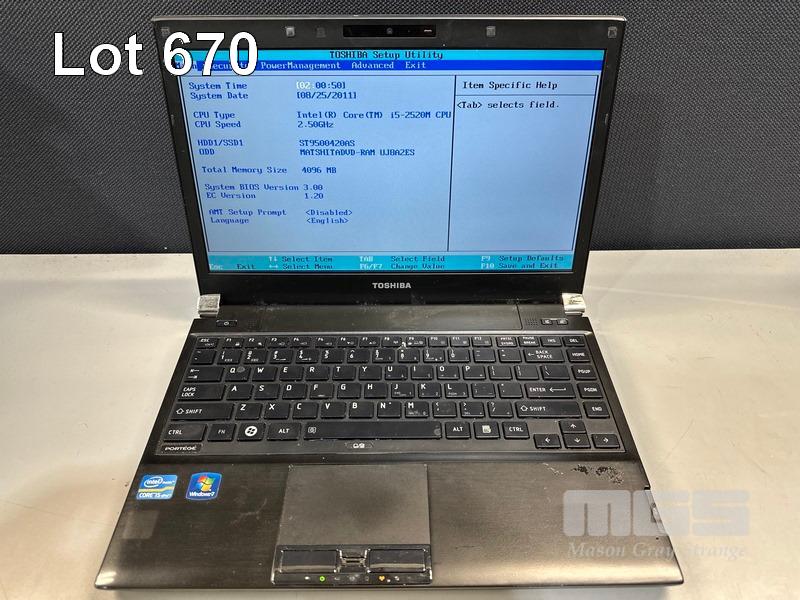 3 x LAPTOPS INC. - TOSHIBA PORTEGE R830, CORE i5 2520M @ 2.5GHz, 4GB RAM, 500GB SATA HDD (WITH POWER SUPPLIES) S/N:7B108193H, 5C055961H, 8B192964H