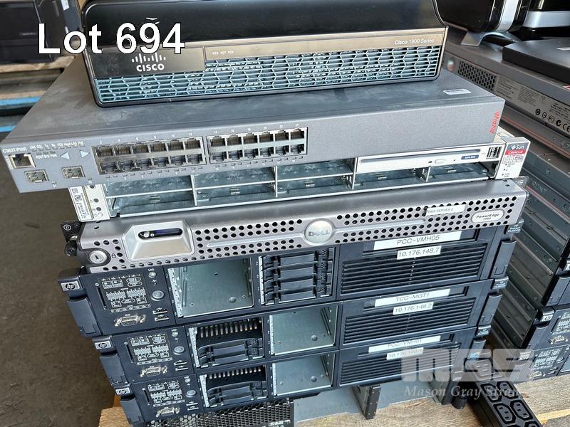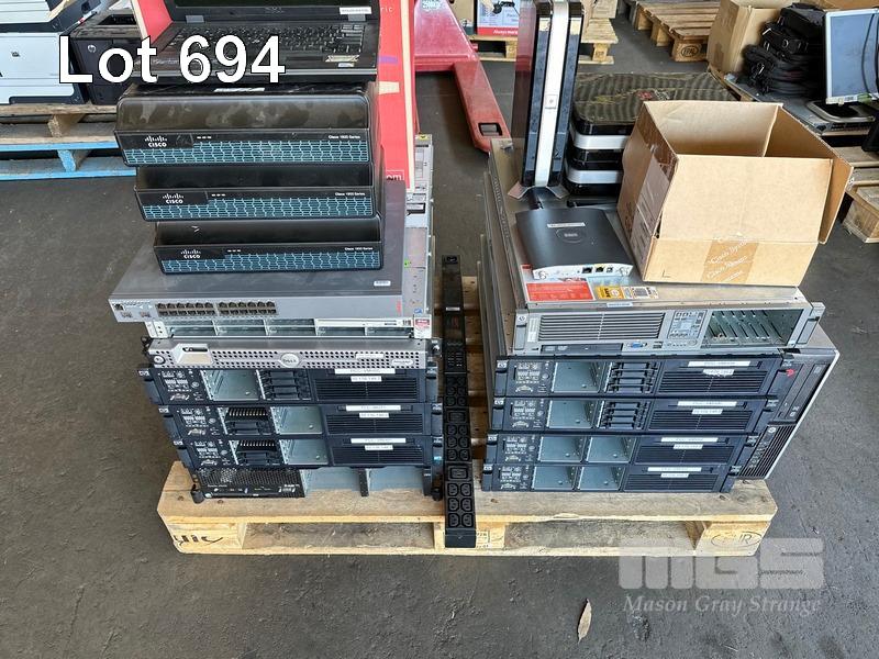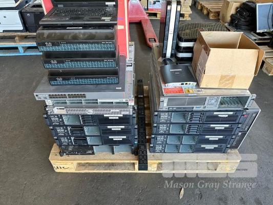 1 x PALLET LOT INC. DELL LATITUDE E5400 LAPTOP, CORE 2 DUO T7250 @ 2GHz, 2GB RAM, 160GB HDD, HP COMPAQ PRO 6300 SFF COMPUTER, 3 x CISCO 1900 SERIES ROUTERS, HP PROLIANT DL380 G6 SERVERS (NO HDD), CISCO ACCESS POINTS, POLYCOM HDX8000 VIDEO CONFERENCING, APC PDU S/N:9N9J22S, AUD3490DJF
