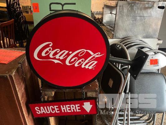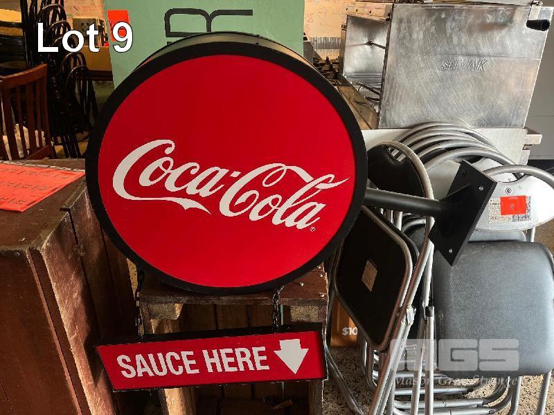 COCA-COLA SIGN, WALL MOUNT, ILLUMINATED, 500m DIAMETER & 2 x ORNATE WOODEN CRATES .