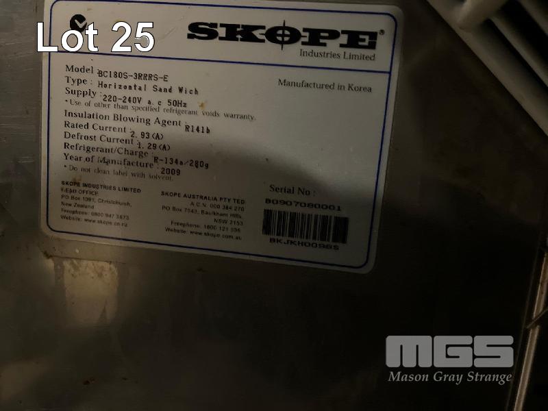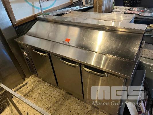CHEFS PREP FRIDGE, SKOPE CENTAUR MOD: BT-180S-3RRS-E DOM: 2009 STAINLESS STEEL, 3 DOOR, TRAYS & LIDS, RUNNING 1800 (L) x 700mm (D)