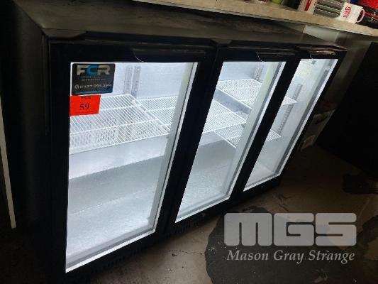 UNDERBENCH DISPLAY FRIDGE, SALTAS MOD: KB335 3 x GLASS DOORS 300 LITRE, ILLUMINATED & TESTED
