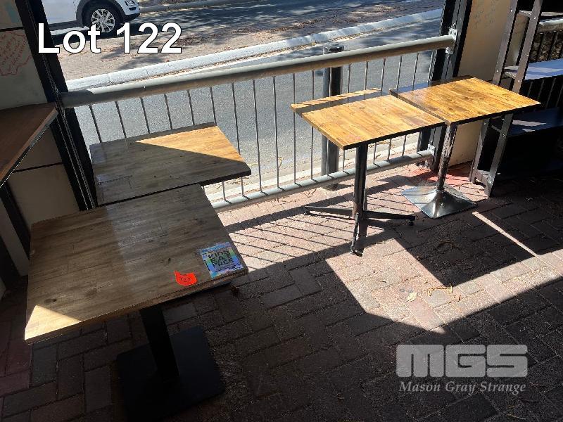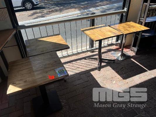 4 x TIMBER TOP CAFE TABLES, 650 x 600mm