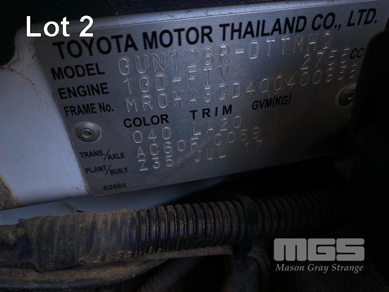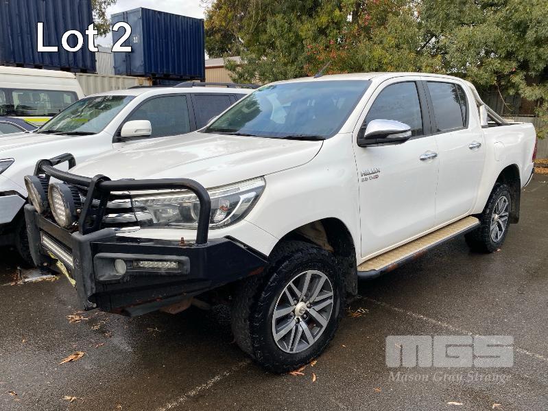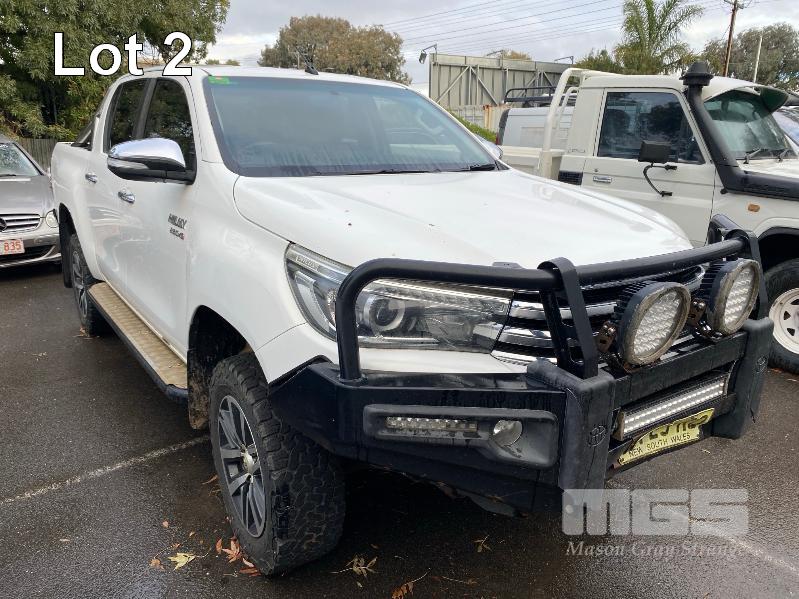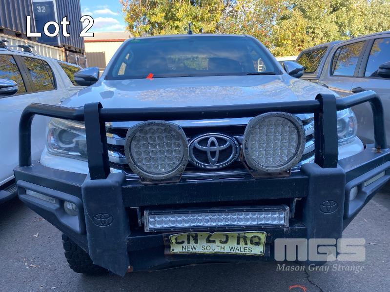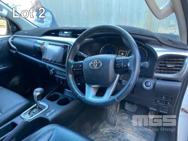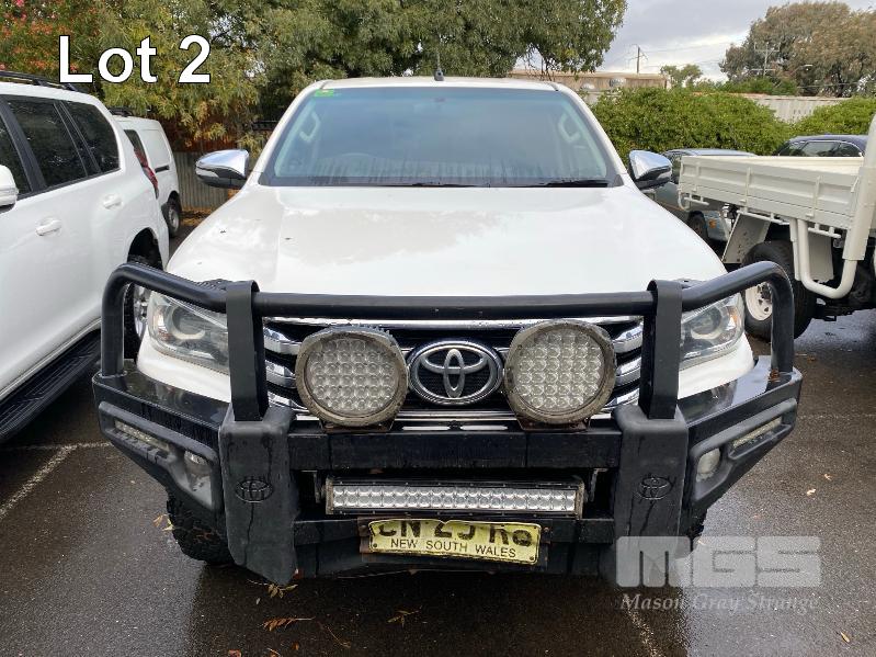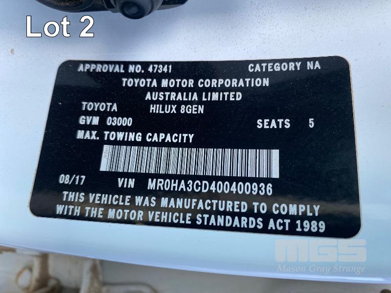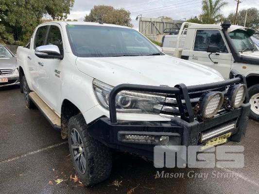 2017 TOYOTA HILUX SR5 DUAL CAB UTE 4x4 REG: NO PLATES (NSW) VIN: MR0HA3CD400400936 ENG: 1GD0330302 ODO: 246,210kms SHOWING 2.8L, AUTOMATIC TRANSMISSION, TURBO DIESEL, WHITE DUCO, 4 DOORS, 5 SEAT, 4x4 ABS, AIR BAG, AIR CON, ALLOY TRAY, ALLOY WHEELS, BLUETOOTH, BULL BAR, CD PLAYER, CENTRAL LOCKING, CRUISE CONTROL, IMMOBILISER, POWER WINDOWS, SAT NAV, SPARE WHEEL, TOW BAR, TRACTION CONTROL, LED SPOT LIGHTS KEY#37 (WITH 1 KEY/S)