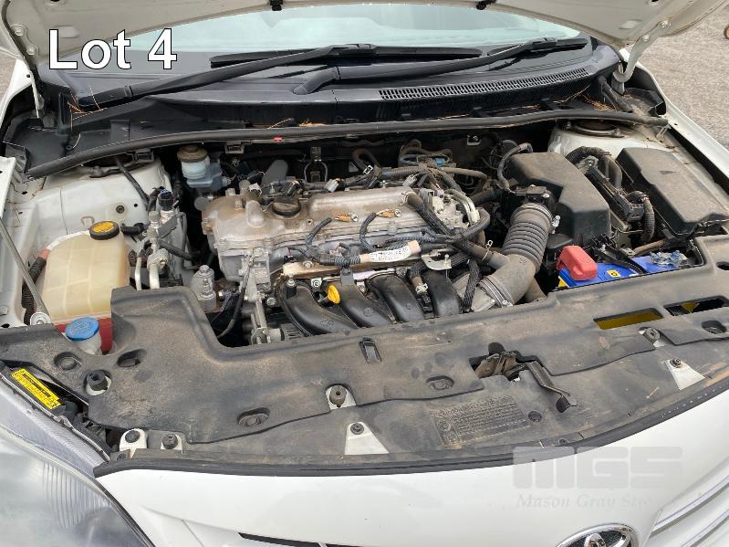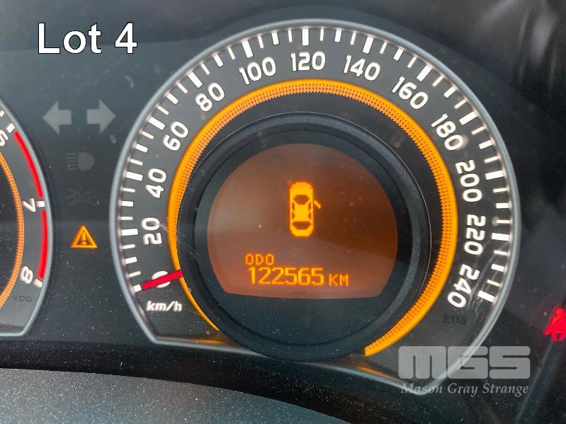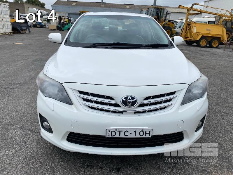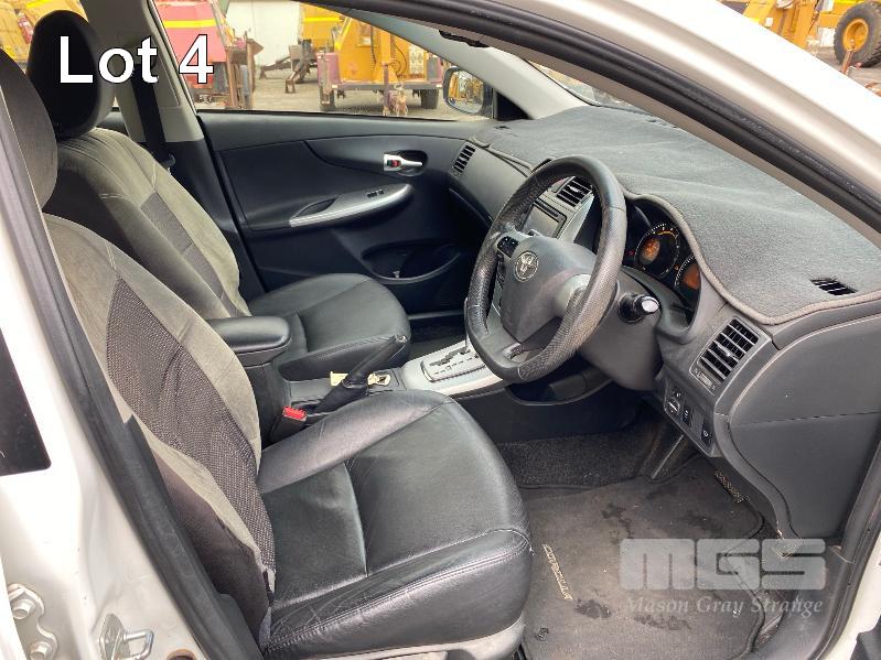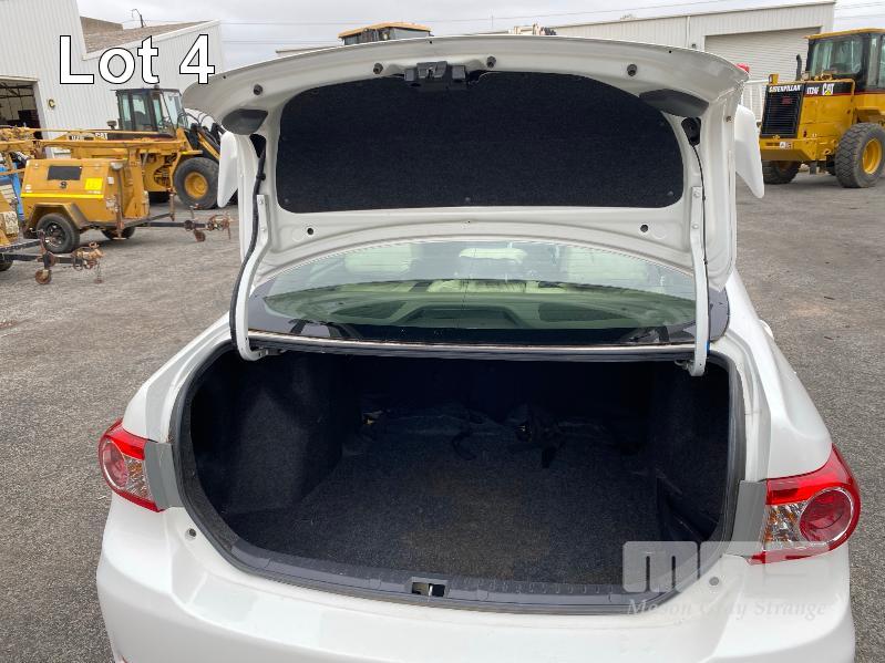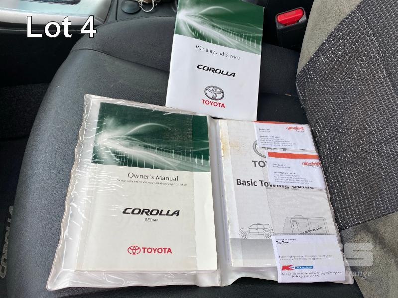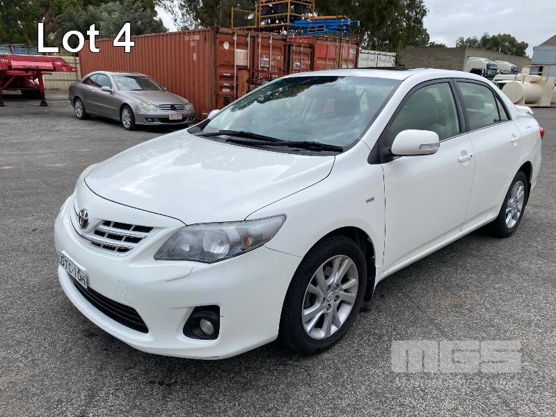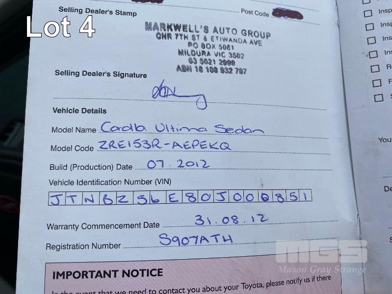 2012 TOYOTA COROLLA ULTIMA, 150 SERIES, SEDAN, FWD REG: NO PLATES VIN: JTNBZ56E80J000851 ENG: 3ZR-FE ODO: 122,565kms SHOWING 2.0ltr. VVTI, 4 CYL EFI, AUTO, WHITE, 4 DOORS, 5 SEAT, FWD AIR BAG, AIR CON, ALLOY WHEELS, CD PLAYER, CENTRAL LOCKING, CRUISE CONTROL, IMMOBILISER, POWER WINDOWS, TRACTION CONTROL, SUNROOF KEY #70 (NO PAPERS, WITH 1 KEY/S, WITH OWNER'S MANUAL, WITH SERVICE BOOKS) CONDITION: L\H\R DOOR - MINOR DENTS & SCRATCHES