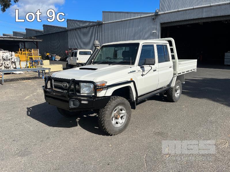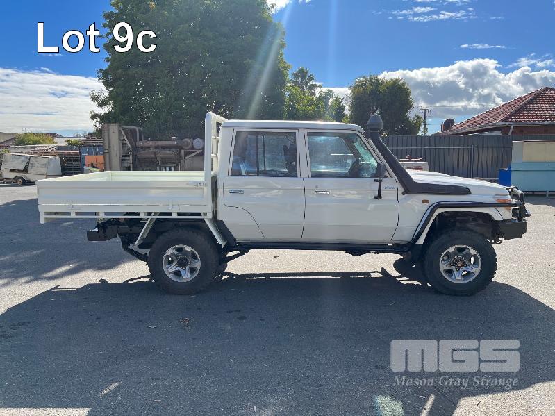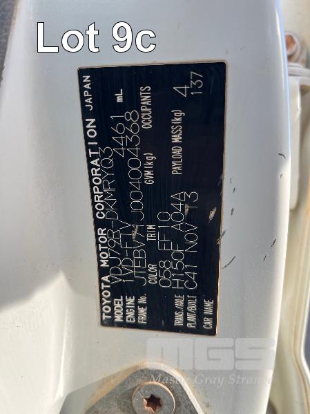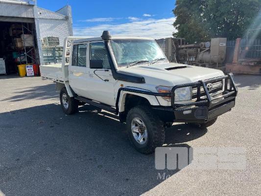 2013 TOYOTA LANDCRUISER VDJ79R-DKMRYQ3, 79 SERIES DUAL CAB TRAY TOP 4x4 REG: NO REGO PLATES VIN: JTEBV71J004004368 ODO: 375,774 4.5L, V8 TURBO DIESEL, 5 SPEED MANUAL, WHITE DUCO, 4 DOORS, 5 SEAT, 4x4 ABS, AIR BAG, AIR CON, ALLOY WHEELS, BULL BAR, CD PLAYER, POWER STEERING, POWER WINDOWS, SIDE STEP, STEEL TRAY, SNORKEL KEY #61 (NO PAPERS, WITH 1 KEY/S, NO OWNER'S MANUAL, NO SERVICE BOOKS)