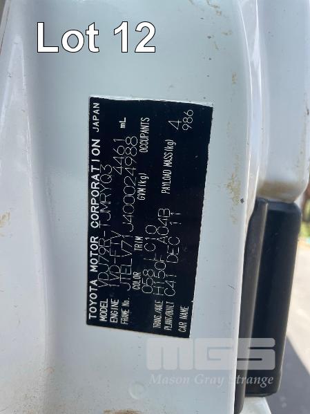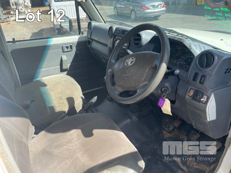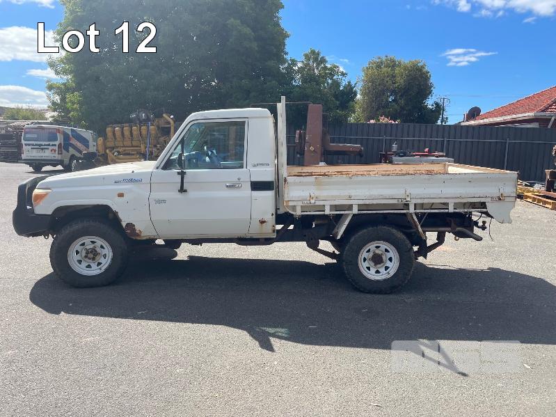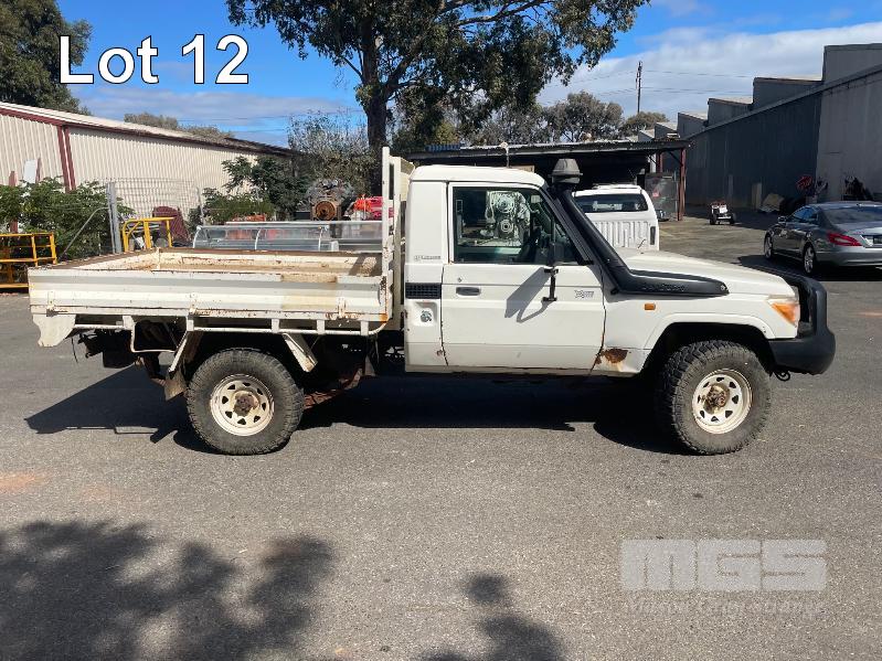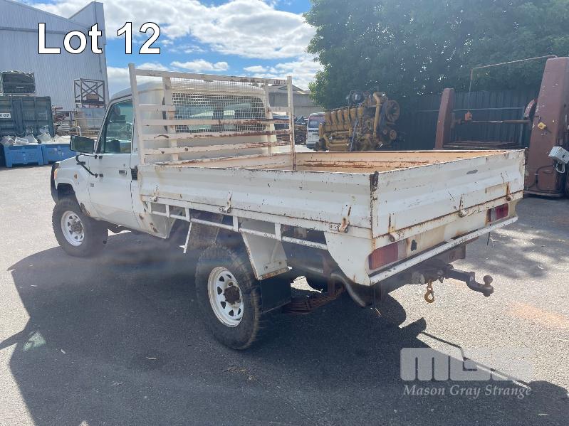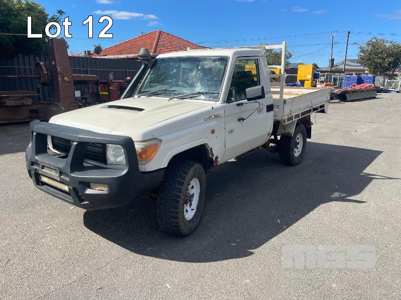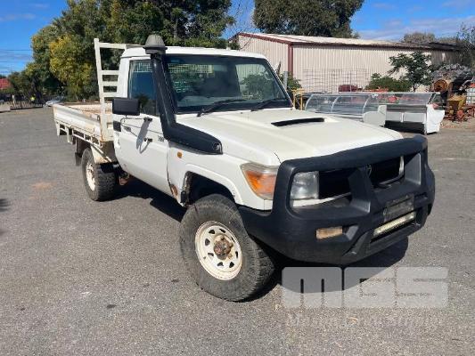 2011 TOYOTA LANDCRUISER VDJ79R-TJMRYQ3, 79 SERIES SINGLE CAB TRAY TOP 4x4 REG: NO PLATES VIN: JTELV71J43024988 ODO: 293,555kms SHOWING 4.5L V8, TURBO DIESEL, 5 SPEED MANUAL TRANSMISSION, WHITE DUCO, 2 DOORS, 3 SEAT, 4x4 AIR BAG, AIR CON, BULL BAR, POWER STEERING, SIDE STEP, TOW BAR, STEEL SPORTS WHEELS, DROP SIDE TRAY, 2400 x 1830mm KEY#46 (WITH 1 KEY/S)