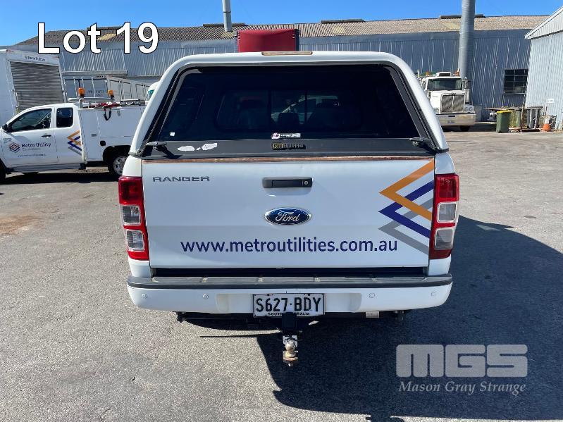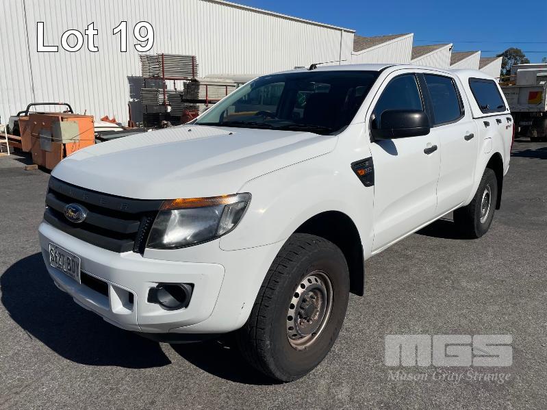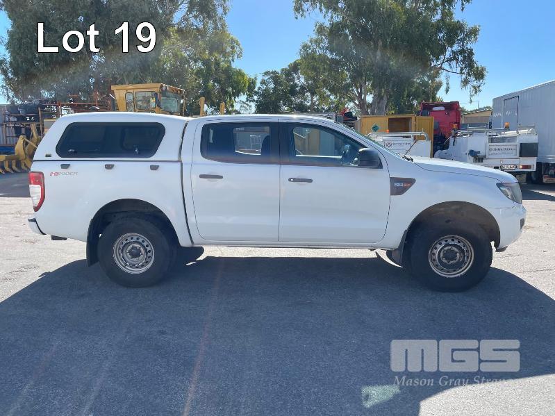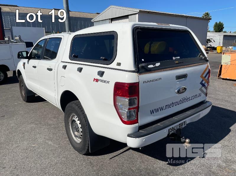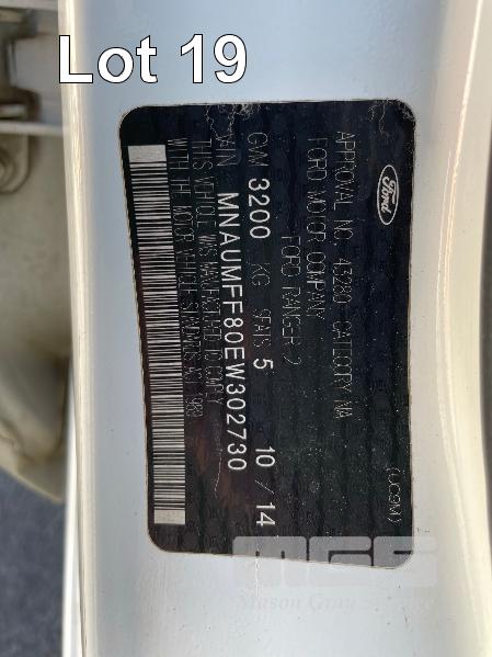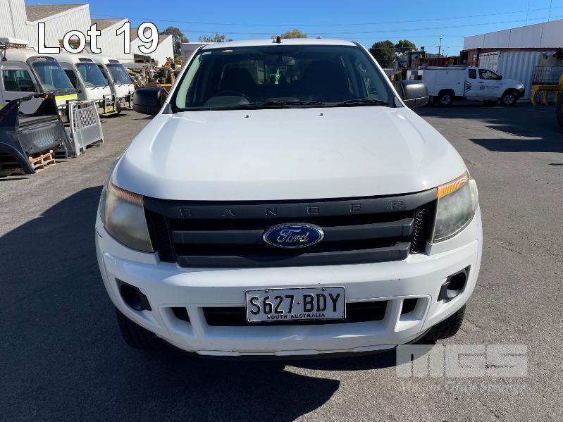 2014 FORD RANGER, HI RIDER, DUAL CAB UTE REG: S627 BDY (SA) VIN: MNAUMFF80EW302730 ENG: P4AT1205506 ODO: 259,656kms SHOWING 2.2L, 6 SPEED AUTO, DIESEL, WHITE DUCO, 2 SEAT, ABS, AIR BAG, AIR CON, BLUETOOTH, CD PLAYER, CRUISE CONTROL, IMMOBILISER, POWER WINDOWS, TOW BAR, FIBERGLASS CANOPY KEY #23 (WITH PAPERS, WITH 1 KEY/S, WITH OWNER'S MANUAL)
