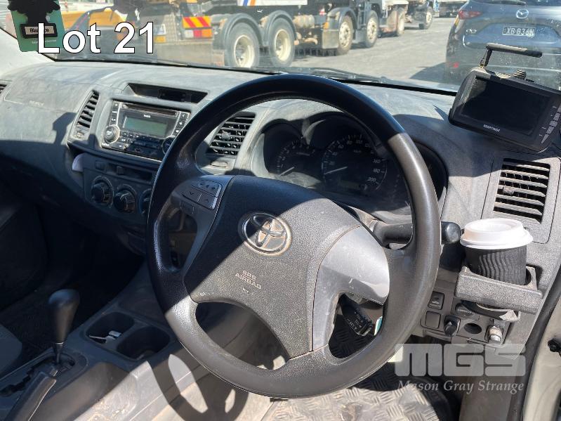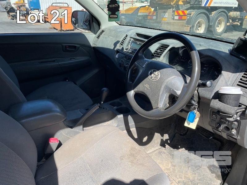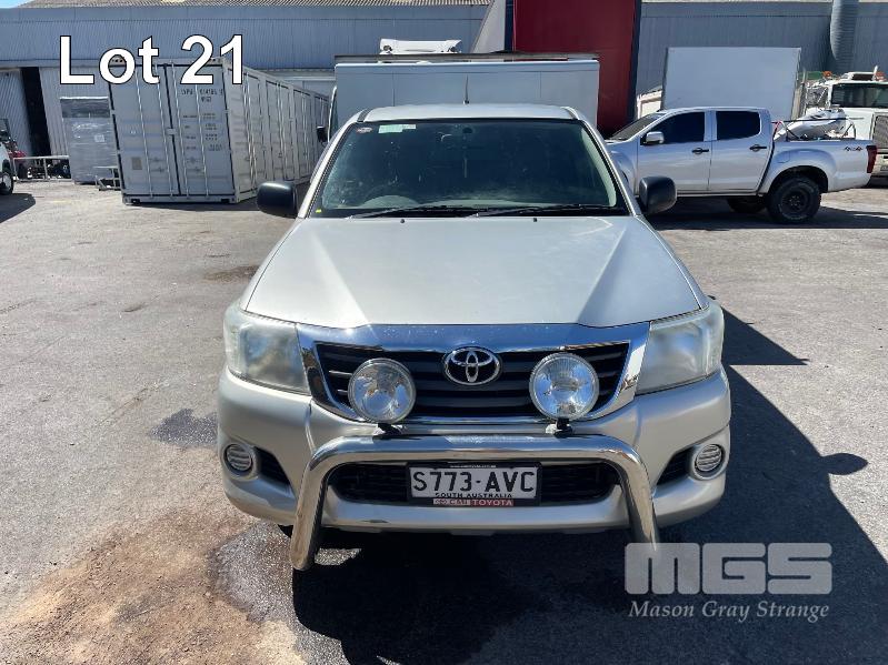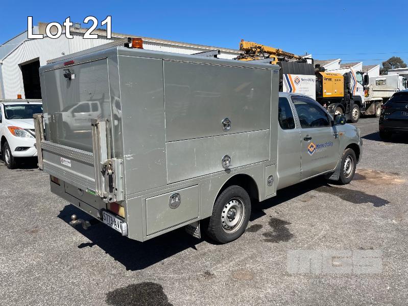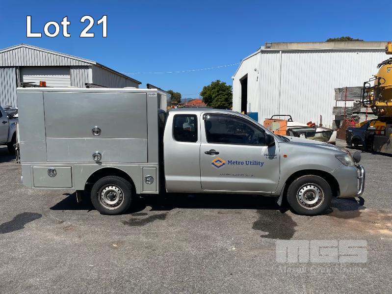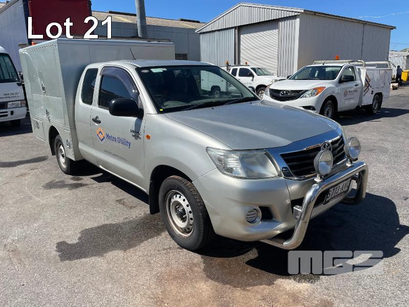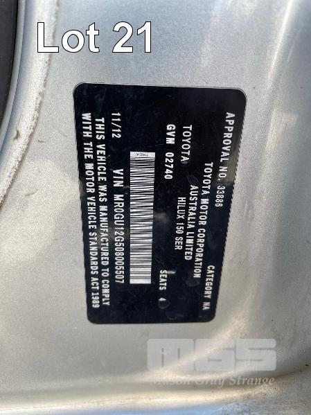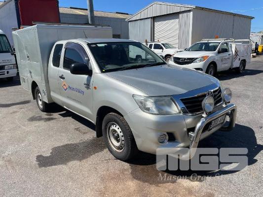 2012 TOYOTA HILUX EXTRA CAB, 150 SER. SERVICE BODY REG: S773 AVC VIN: MR0GU12G508005507 ENG: 1GRA598331 ODO: 223,856kms SHOWING V6, PETROL, AUTOMATIC TRANSMISSION, SILVER DUCO, AIR BAG, AIR CON, NUDGE BAR, SPOT LIGHTS, TOW PACK PACIFIC BODIES, SERVICE BODY OPEN, DOUBLE SIDE & REAR ACCESS WITH REAR STEP/BENCH KEY #53 (WITH PAPERS, WITH 1 KEY/S, WITH SERVICE BOOKS) CONDITION: FORNT BUMPER/BONNET - MINOR DENTS & SCRATCHES