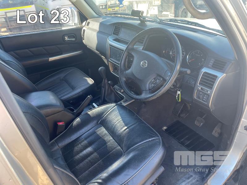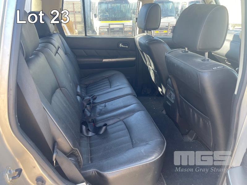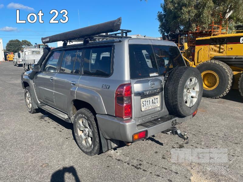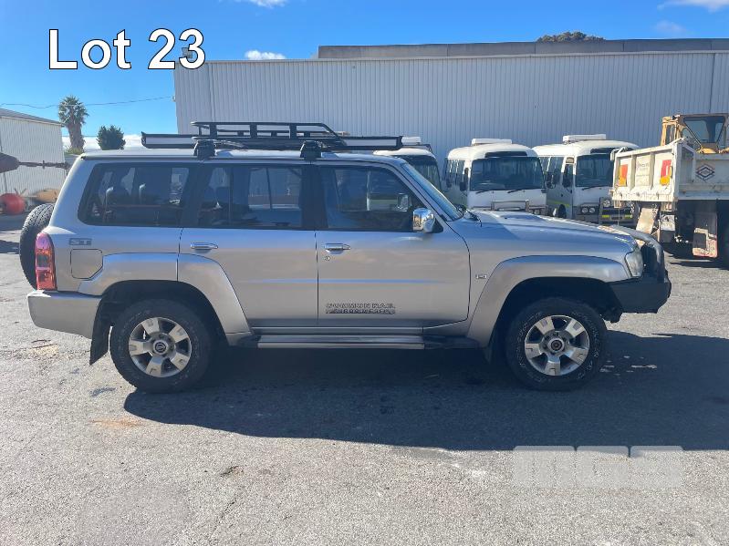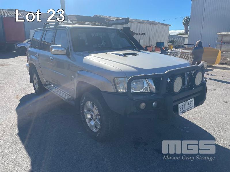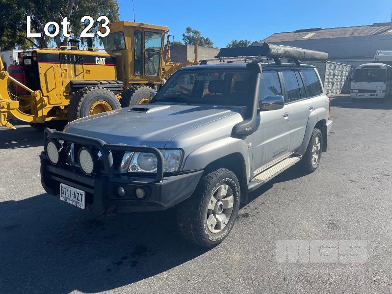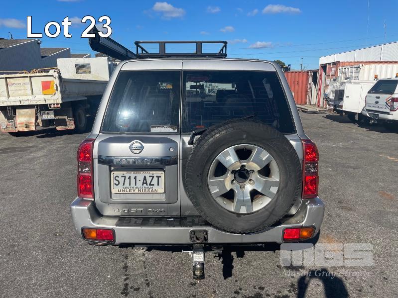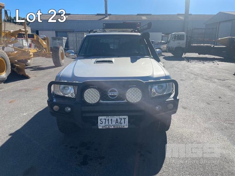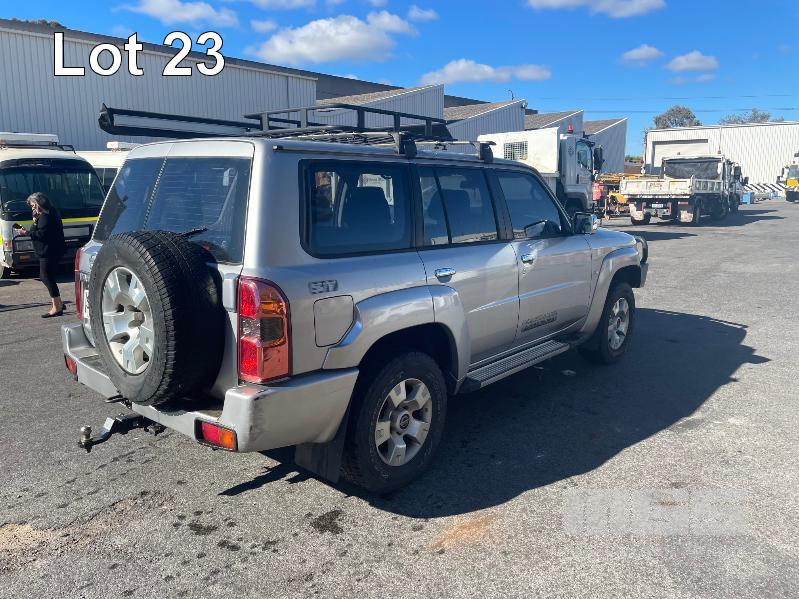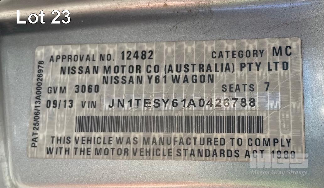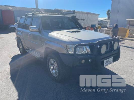 2013 NISSAN PATROL ST Y61 WAGON 4x4 REG: S711 AZT (SA) VIN: JN1TESY61A0426788 ODO: 142,743 3.0L, TURBO DIESEL, MANUAL, SILVER DUCO, 5 DOORS, 7 SEAT, 4x4 ABS, AIR BAG, AIR CON, ALLOY WHEELS, BLUETOOTH, BULL BAR, CENTRAL LOCKING, CRUISE CONTROL, FOG LAMPS, IMMOBILISER, LEATHER TRIM, POWER STEERING, POWER WINDOWS, ROOF RACKS, SAT NAV, SIDE STEP, SPARE WHEEL, SPOT LIGHTS, TOW BAR, RIDGE RIDER AWNING, SNORKLE, NOTE: ELECTRIC SEATS WORKING, DRIVERS SIDE SEAT CONTROL HOUSING CLIPS BROKEN, NEEDS MINOR REPAIR KEY #60 (WITH 1 KEY/S, NO OWNER'S MANUAL, NO SERVICE BOOKS)
