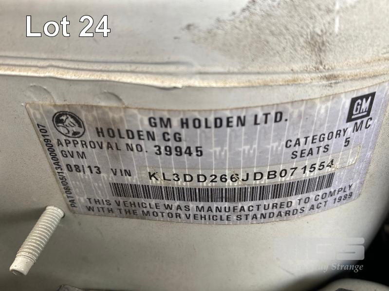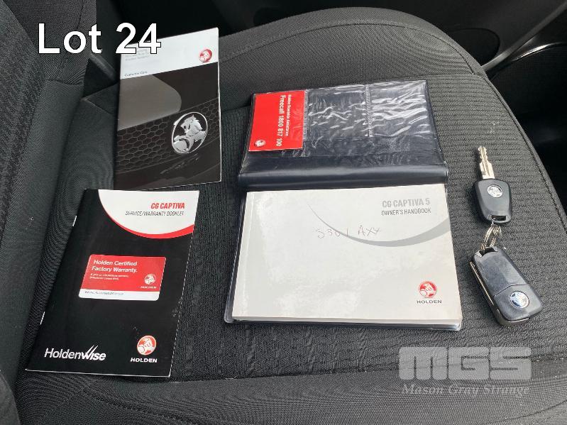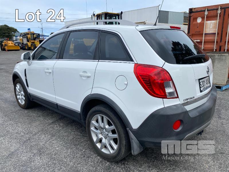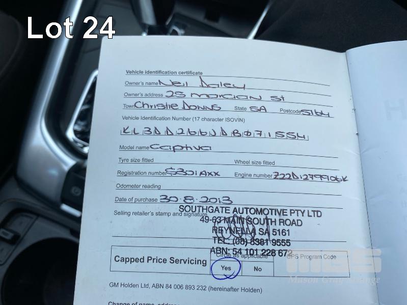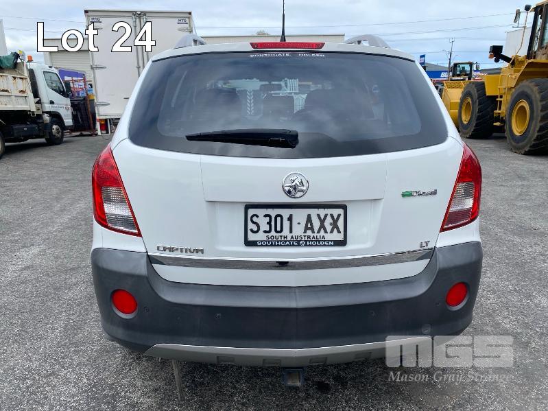 2013 HOLDEN CAPTIVA LT SUV, AWD REG: S301 AXX (SA) VIN: KL3DD266JDB071554 ENG: Z22D1279906K ODO: 206,592kms SHOWING 4 CYLINDER TURBO DIESEL, AUTOMATIC TRANSMISSION, WHITE DUCO, 4 DOORS, 5 SEAT, AWD ABS, AIR BAG, AIR CON, ALLOY WHEELS, CENTRAL LOCKING, IMMOBILISER, POWER WINDOWS, TRACTION CONTROL, SPARE WHEEL KEY #27 (WITH PAPERS, WITH 2 KEY/S, WITH OWNER'S MANUAL, WITH SERVICE BOOKS)