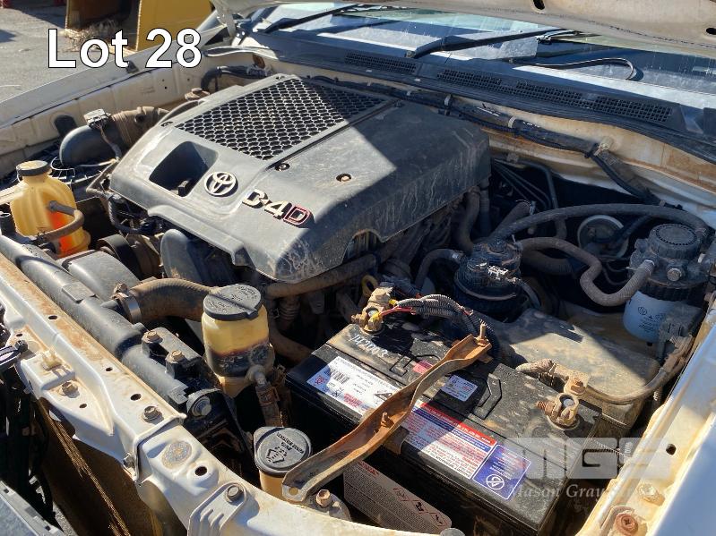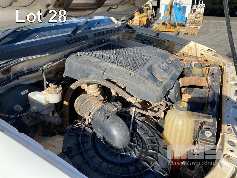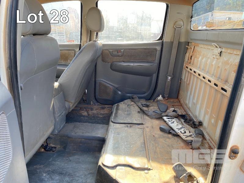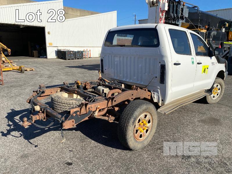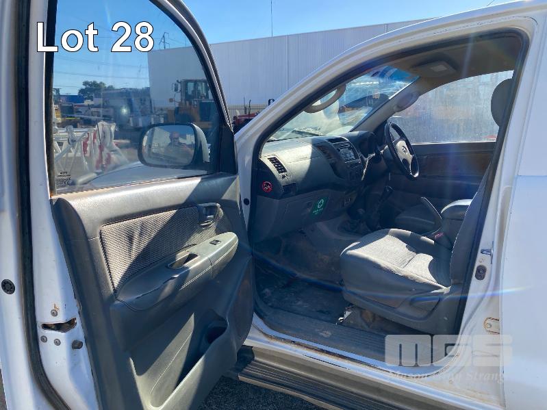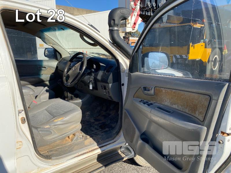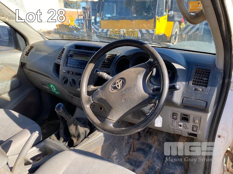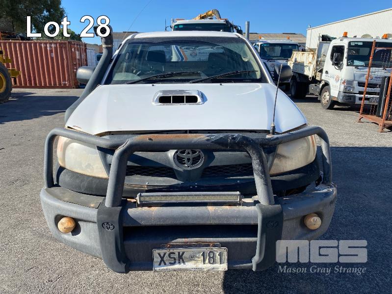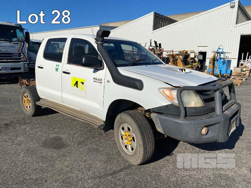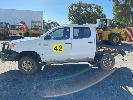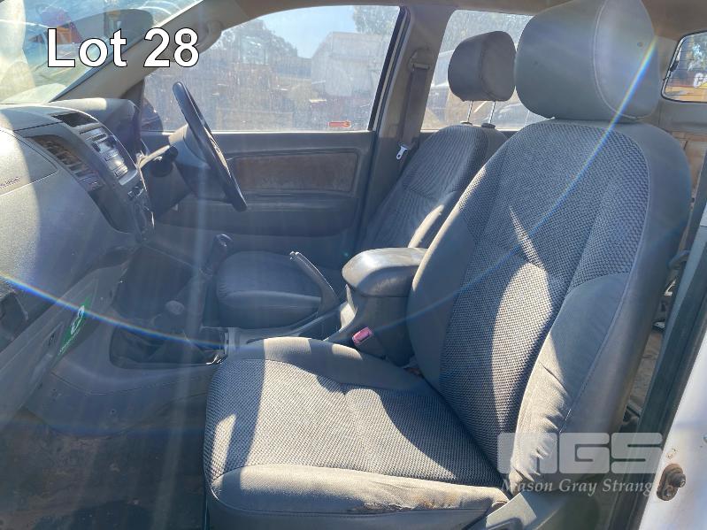 2008 TOYOTA HILUX KUN26R-PRMDY03 150 SERIES DUAL CAB CHASSIS 4 x 4 REG: XSK 181 (SA) VIN: MR0FZ22G501163132 ENG: 1KD7555703 ODO: 349,186 kms SHOWING PLANT NO: LV42 3.0 LITRE, 5 SPEED MANUAL, TURBO DIESEL, WHITE DUCO, 4 DOORS, 5 SEAT, 4 x 4 AIR BAG, AIR CON, BULL BAR, CD PLAYER, CENTRAL LOCKING, DECALS, IMMOBILISER, POWER STEERING, POWER WINDOWS, SIDE STEP, SPARE WHEEL KEY #18 (WITH PAPERS, WITH 1 KEY/S, NO OWNER'S MANUAL, NO SERVICE BOOKS) CONDITION: NO REAR SEATS - POWER WINDOWS - SWITCH ALL FAULTS