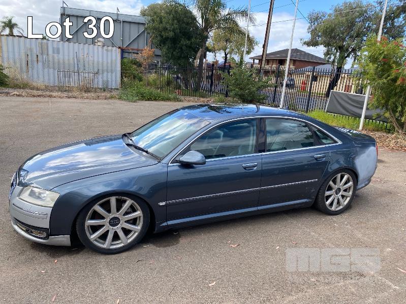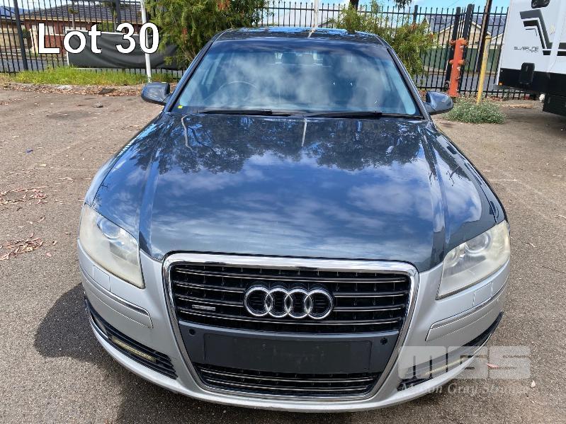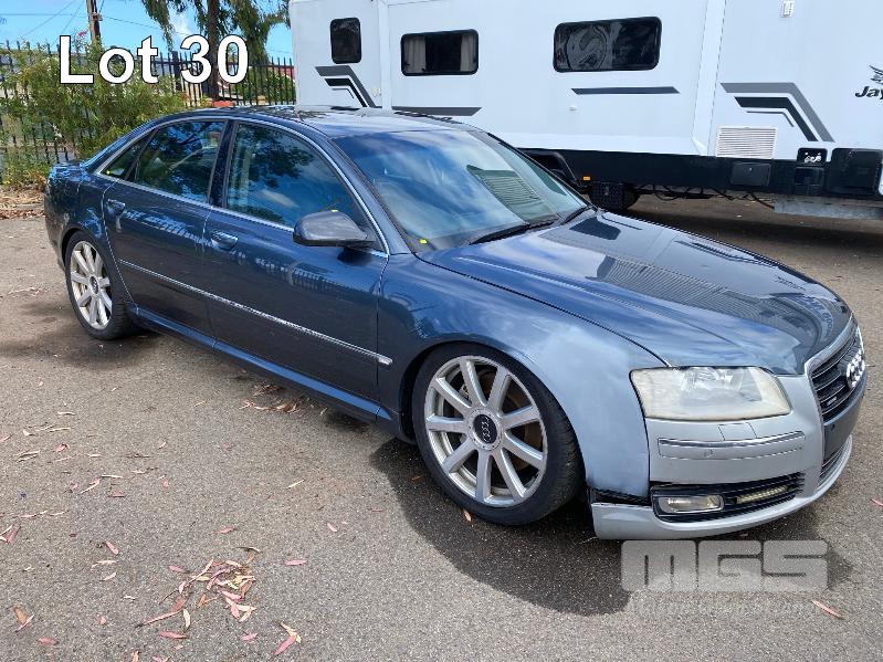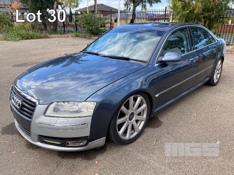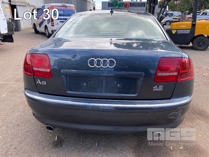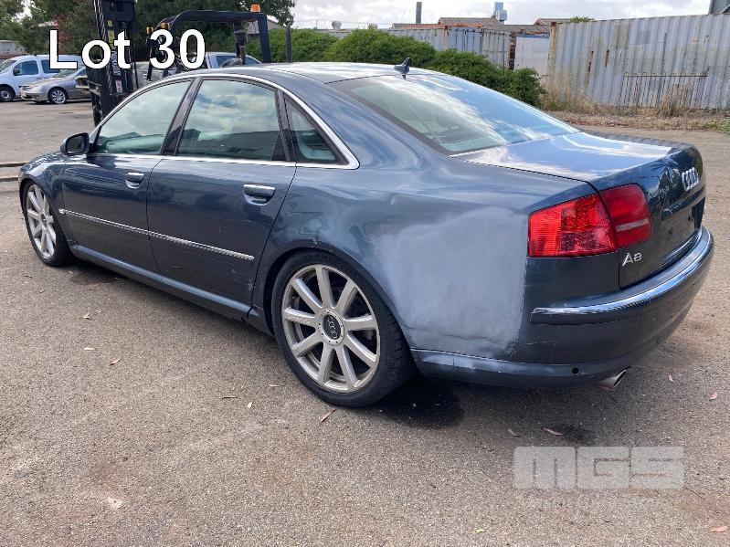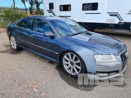 2005 AUDI AG A8, 4E SEDAN REG: NO PLATES VIN: WAUZZZ4E86N005642 ENG: BFM033061 ODO: 236,674 4.2 LITRE V8, AUTOMATIC TRANSMISSION, METALLIC BLUE, 4 DOORS, 5 SEAT, ABS, AIR BAG, AIR CON, ALLOY WHEELS, CD PLAYER, CENTRAL LOCKING, CRUISE CONTROL, IMMOBILISER, LEATHER TRIM, POWER STEERING, POWER WINDOWS, SUN ROOF KEY #3 (WITH 1 KEY/S) CONDITION: LHR 1/4 PANEL - DENTS & SCRATCHES FRONT - DENTS & SCRATCHES