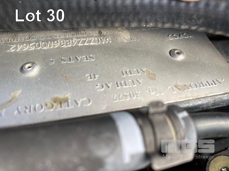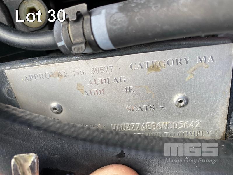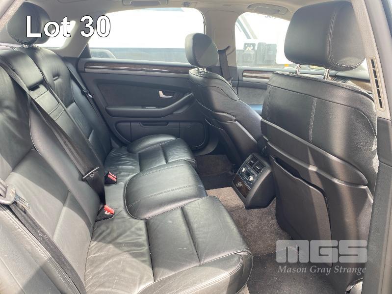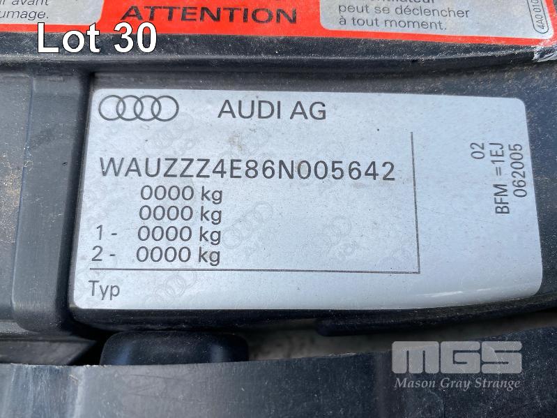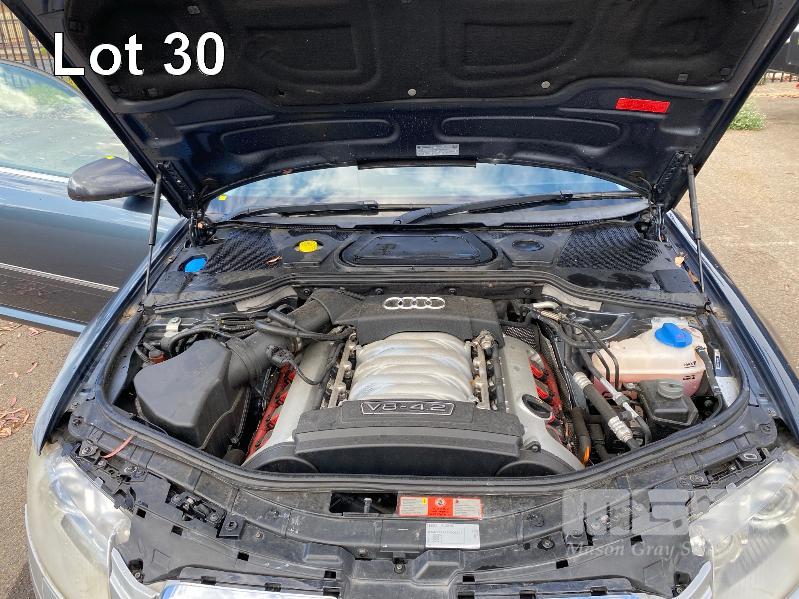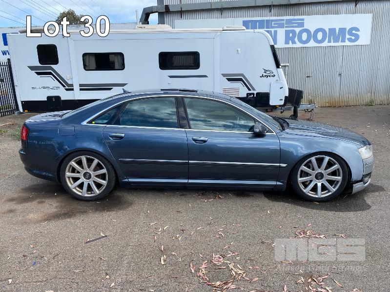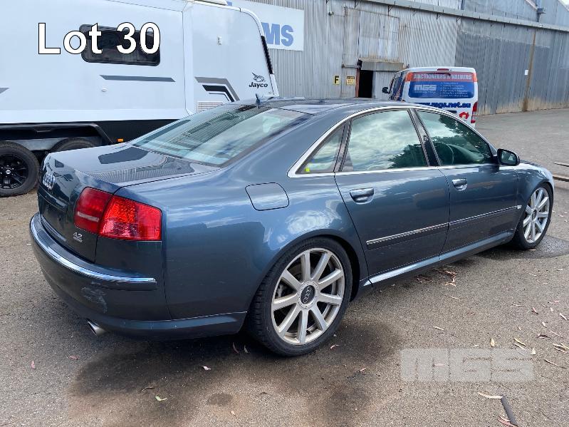 2005 AUDI AG A8, 4E SEDAN REG: NO PLATES VIN: WAUZZZ4E86N005642 ENG: BFM033061 ODO: 236,674 4.2 LITRE V8, AUTOMATIC TRANSMISSION, METALLIC BLUE, 4 DOORS, 5 SEAT, ABS, AIR BAG, AIR CON, ALLOY WHEELS, CD PLAYER, CENTRAL LOCKING, CRUISE CONTROL, IMMOBILISER, LEATHER TRIM, POWER STEERING, POWER WINDOWS, SUN ROOF KEY #3 (WITH 1 KEY/S) CONDITION: LHR 1/4 PANEL - DENTS & SCRATCHES FRONT - DENTS & SCRATCHES