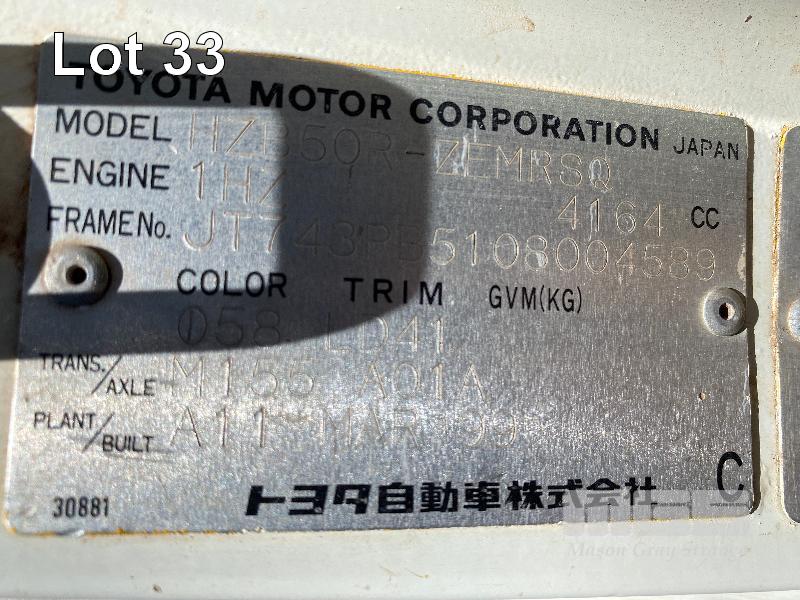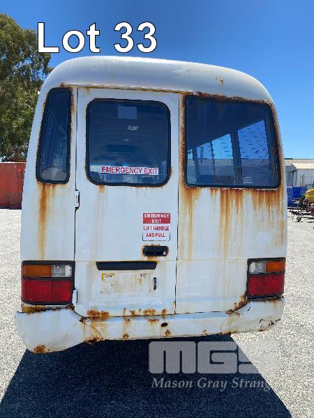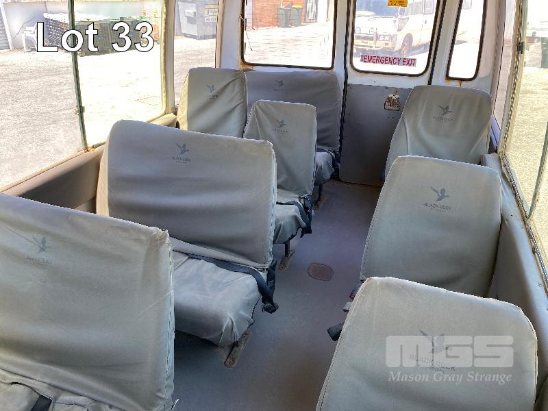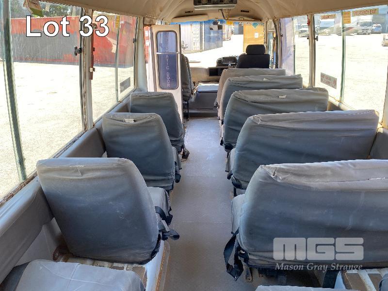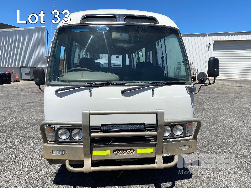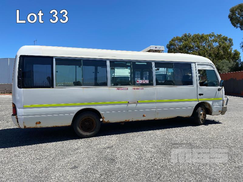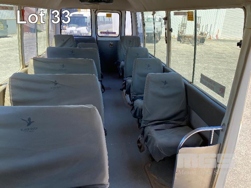 1999 TOYOTA COASTER H7B50R-ZEMRSQ 50 SER BUS REG: NO PLATES VIN: JT743PB5108004589 ODO: 490,054kms SHOWING 4.2 LTR, 4 CYLINDER DIESEL, 5 SPEED MANUAL TRANSMISSION, WHITE DUCO, 3 DOORS, 22 SEAT, AIR CON, BULL BAR, GVM: 4,990, ROOF MOUNT AC KEY #30