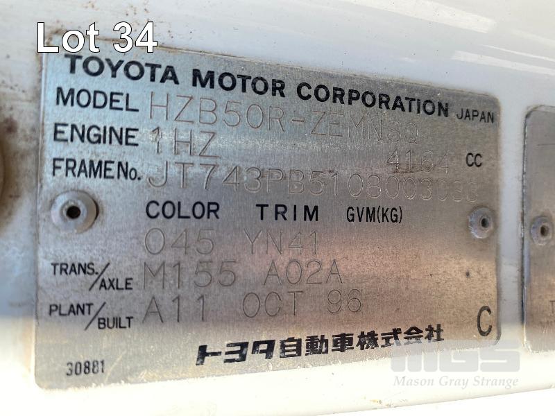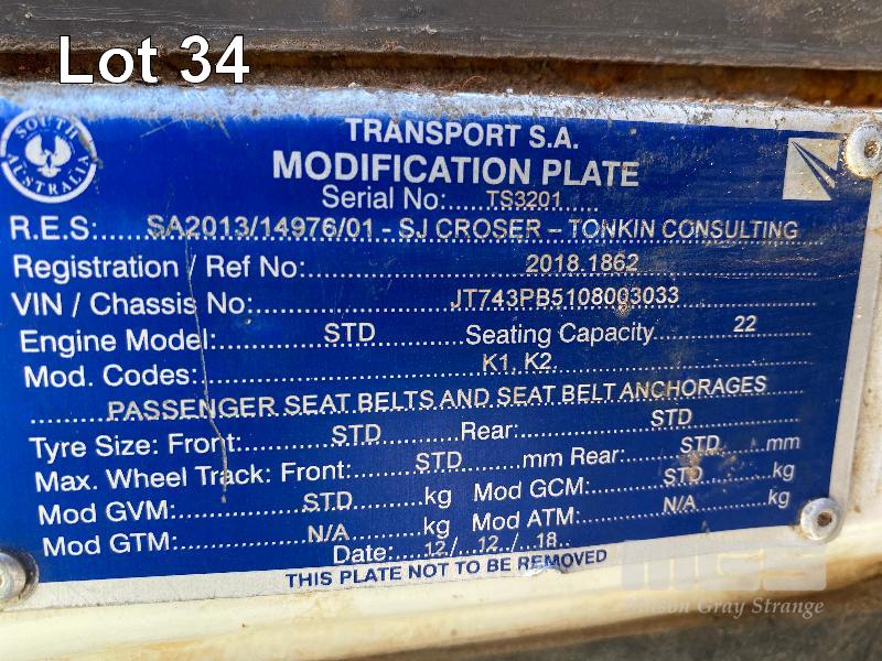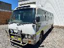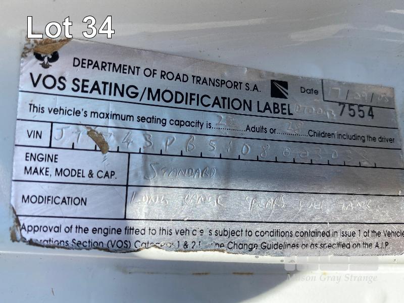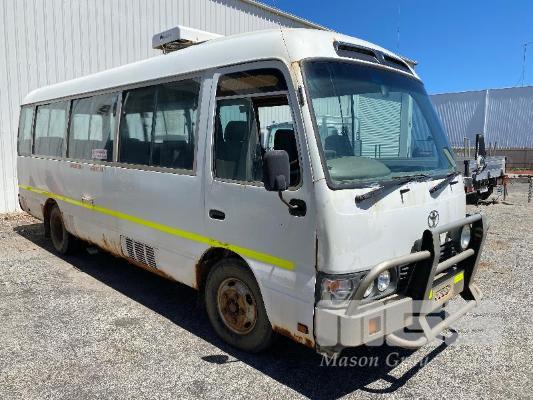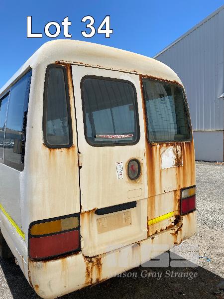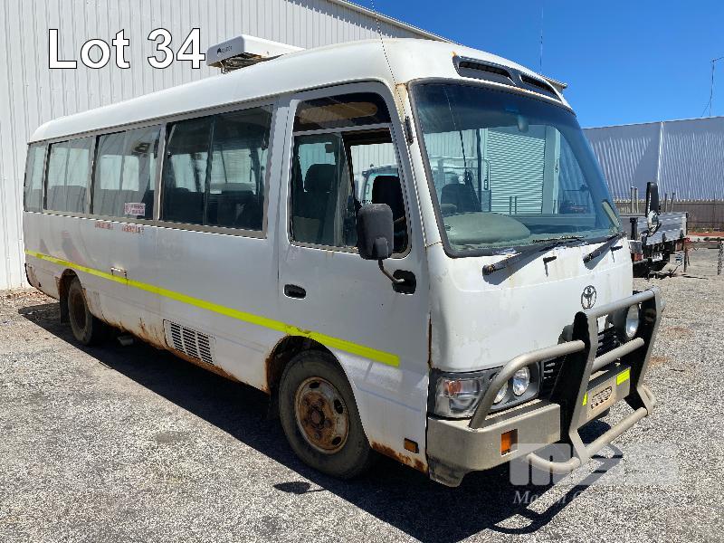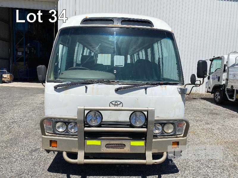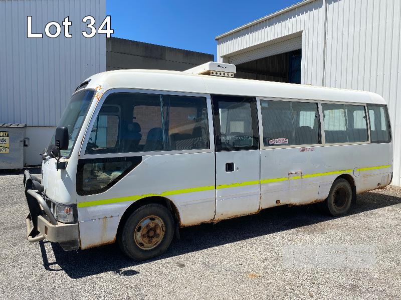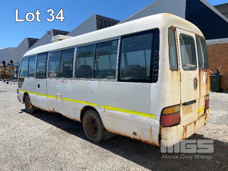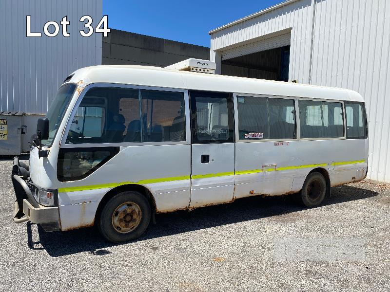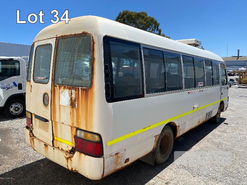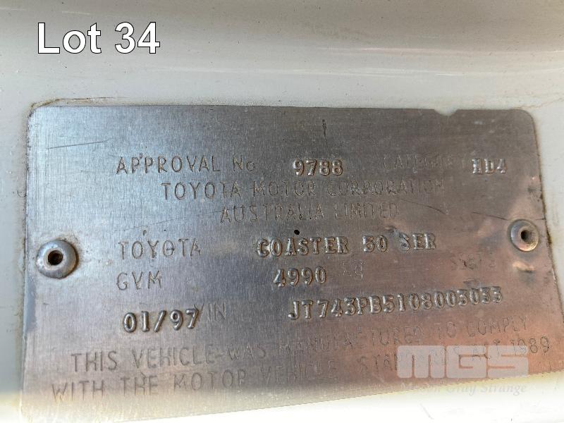 1997 TOYOTA COASTER H7B50R-ZEMNSQ SER 50 BUS REG: NO PLATES VIN: JT743PB5108003033 ODO: 420,637kms SHOWING 4.2 LTR, 4 CYLINDER DIESEL, 5 SPEED MANUAL TRANSMISSION, WHITE DUCO, 3 DOORS, 22 SEAT, AIR CON, BULL BAR, GVM: 4,990, ROOF MOUNT AC KEY #31 (WITH 1 KEY/S) CONDITION: BODY - LOTS OF RUST EVIDENT