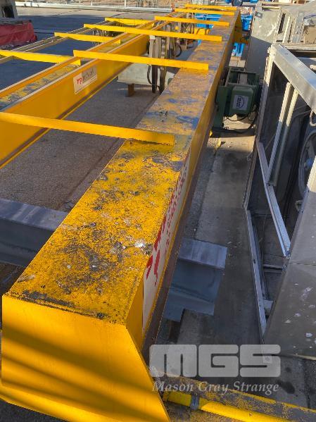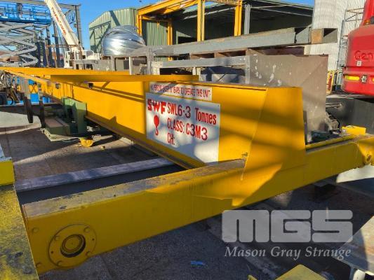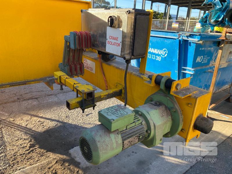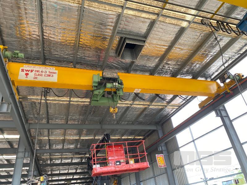 OVERHEAD TRAVELING CRANE SYSTEM MAN GHH, SWF, 6.3 TONNE CLASS C3M3, PENDANT CONTROL, 415V SPAN 8800mm INCLUDING 74 MTRS OF TRACKING AND I BEAM RAILING, WITH BUZZ/CONDUCTOR BARS TO SUIT EQUATING TO APPROX 37mtrs TRAVEL. (LOCATED AT TORRENSVILLE, PLEASE CALL MGS TO ARRANGE INSPECTION) (PLEASE NOTE: BUYER IS RESPONSABLE FOR DECONSTRUCTION & LOADING WITH LICENCED & INSURED CONTRACTORS, VENDOR WILL REMOVE SOME ROOF SHEETING TO FACILITATED CRANE REMOVAL)