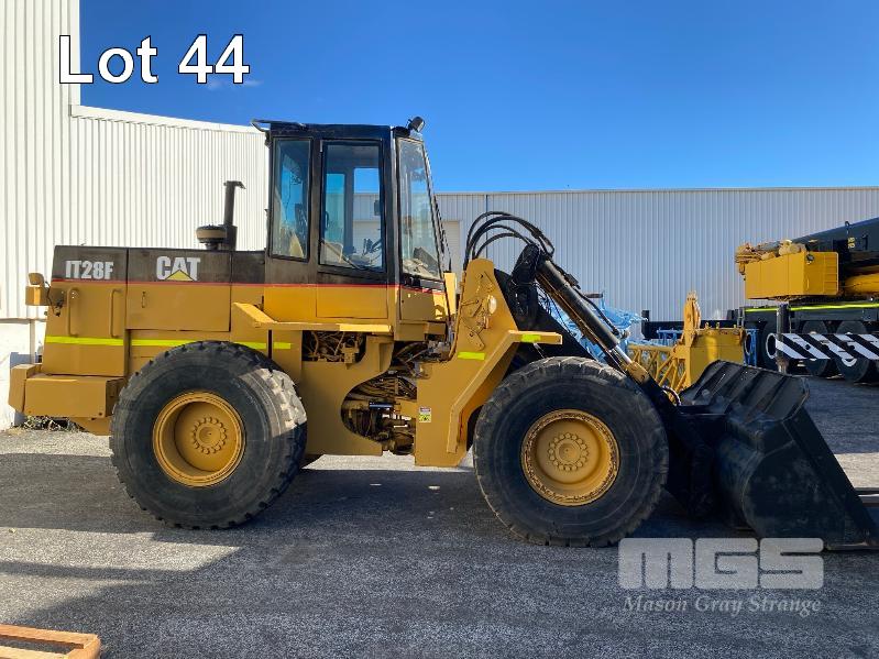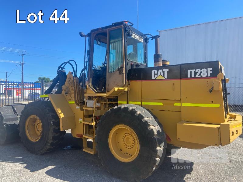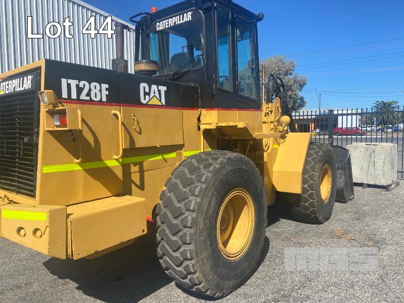 CATERPILLAR IT28F ARTICULATED WHEEL LOADER PIN: IJL00126 HOURS: 20,300 SHOWING 6 CYLINDER TURBO DIESEL FULLY ENCLOSED CAB GP BUCKET 2450mm(W), FORK TYNE ATTACHMENT 1200mm(L) KEY #74