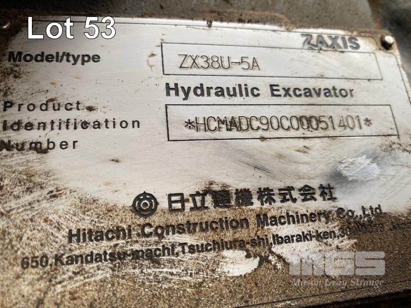 HITACHI ZAXIS 38U-5A MINI EXCAVATOR REG: S88 SHS VIN: HCMADC90C00051401 PIN: HCMADC90C00051401 ENG: Q8736 HOURS: 3,212 hours RUBBER TRACKS SET 4 BUCKETS ROPS CANOPY WITH ROCK BREAKER ATTACHMENT RAMRADE, MODEL: 300(10-145-15) (WITH PAPERS, WITH 1 KEY/S)