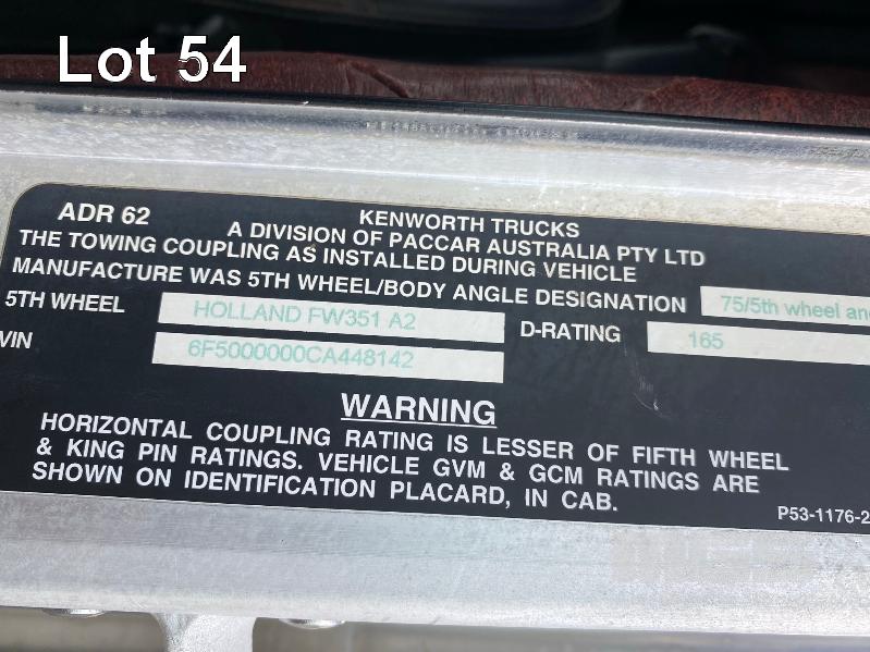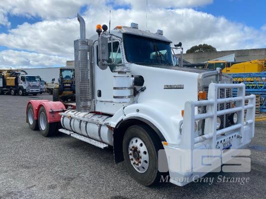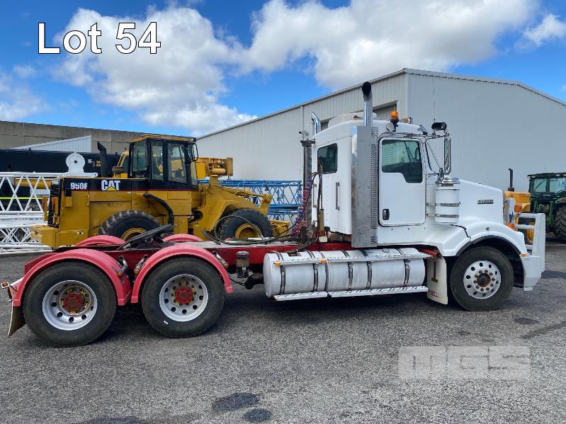 2007 KENWORTH T409 SAR 6x4 LONG NOSE, PRIME MOVER REG: NO PLATES VIN: 6F5000000CA448142 ODO: 812,745 SHOWING HOURS: 28,096 SHOWING CUMMINS, 550 HP TURBO DIESEL, 18 SPEED EATON FULLER MANUAL TRANSMISSION, AIRBAG SUSPENSION, WHITE, 11R22.5 2 DOORS, 2 SEAT, CB RADIO, TIPPER HOIST CONTROLS, BULLBAR, SPOTLIGHTS, AUTO LUBE SYSTEM, QUICK HITCH TURN TABLE KEY #13 (NO PAPERS, WITH 1 KEY/S, NO OWNER'S MANUAL, NO SERVICE BOOKS)