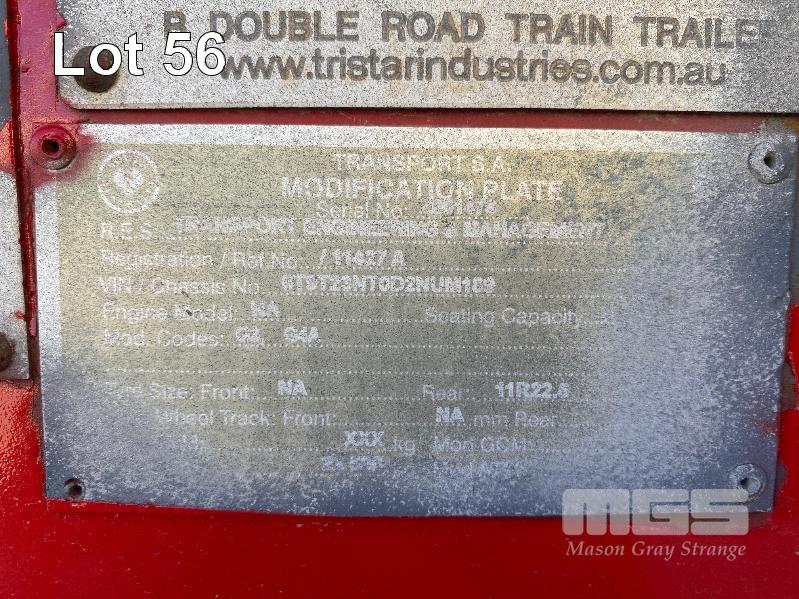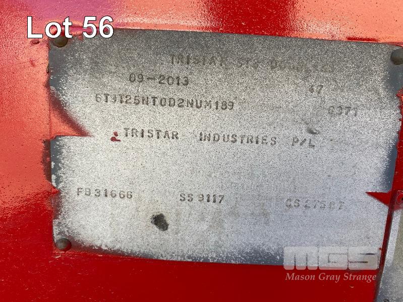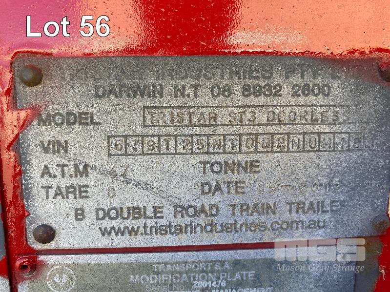 09 / 2013 TRISTAR ST3 TRIAXLE SIDE TIPPER TRAILER REG: NO PLATES VIN / CHASSIS: 6T9T25NT002NUH1189 ATM: 47 TONNE AIRBAG SUSPENSION, 10 STUD RIMS, 275/70 R22.5, B DOUBLE RATED 8 METRE, LED LIGHTS (NO PAPERS)