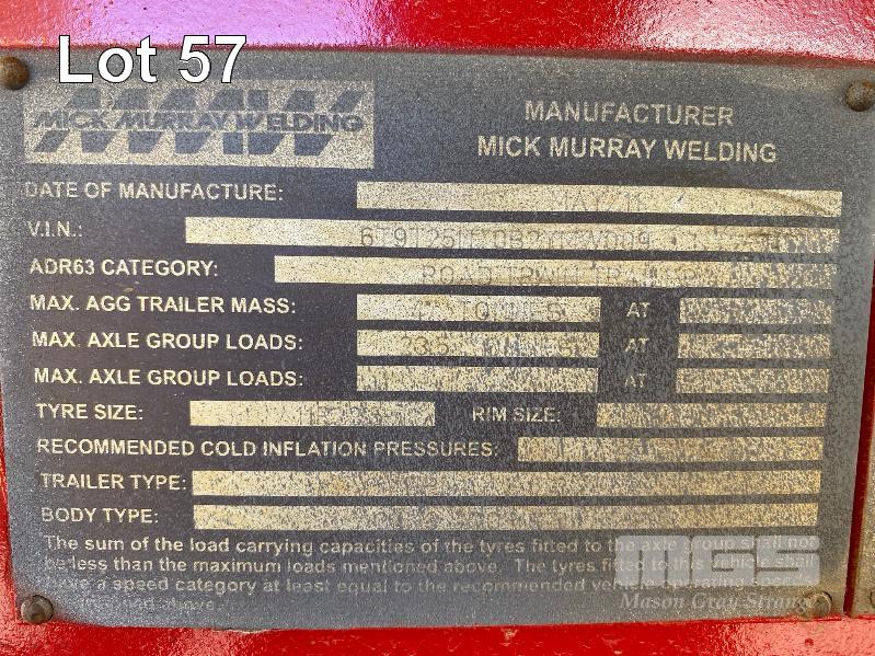2011 MWW TRIAXLE SIDE TIPPER TRAILER REG: NO PLATES VIN / CHASSIS: 6T9T251170B204N004 ATM: 42 TONNE AIRBAG SUSPENSION, SPIDER RIMS, TYRES 11R 22.5, RINGFEEDER, 9 METRES, LED LIGHTS (NO PAPERS)