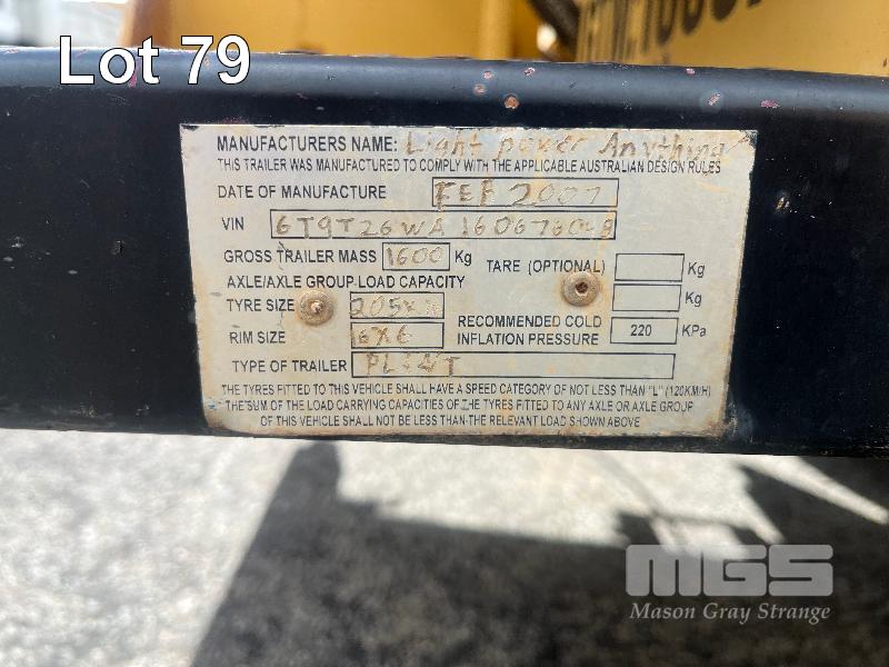LIGHTING TOWER TRAILER, SINGLE AXLE, HYDRAULIC BOOM LIFT, VIN: 6T9T26WA160676049, DOM: 2007, HOURS: 3245, LED LIGHTING, YANMAR 3 CYL DIESEL ENGINE, LSA ALTERNATOR, 415V, 13 KVA, 50mm COUPLER, JOCKEY WHEEL