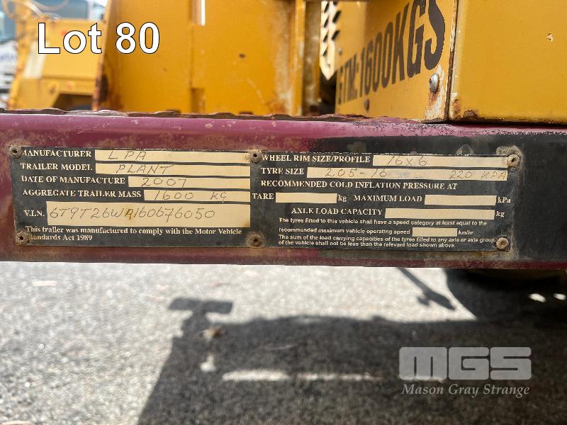 LIGHTING TOWER TRAILER, SINGLE AXLE, HYDRAULIC BOOM LIFT, LED LIGHTS VIN: 6T9T264WA160676050, DOM: 2007, HOURS: 4,659, YANMAR 3 CYL DIESEL ENGINE, LSA ALTERNATOR, 415V 3 PHASE 13KVA, 240V OUTLETS, 50mm COUPLER