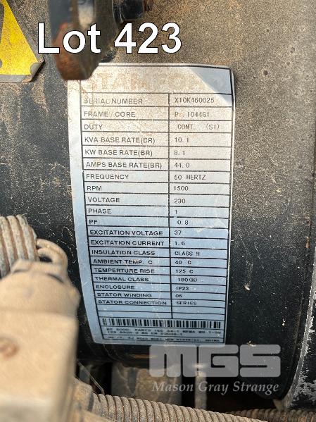 LIGHTING TOWER TRAILER, SINGLE AXLE, HYDRAULIC BOOM LIFT, VIN: 6U9VSS00000017255, KUBOTA 3 CYL DIESEL ENGINE, STAMFORD ALTERNATOR, 230V, 10.1 KVA, 50mm COUPLER, JOCKEY WHEEL