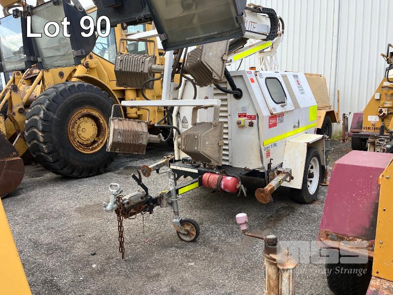 LIGHTING TOWER TRAILER, SINGLE AXLE, HYDRAULIC BOOM LIFT, VIN: 6JE7RAMLTCLU01011, HOURS: 3,277, PERKINS 3 CYL DIESEL ENGINE, MOD: 403D-11, 240V OUTLETS