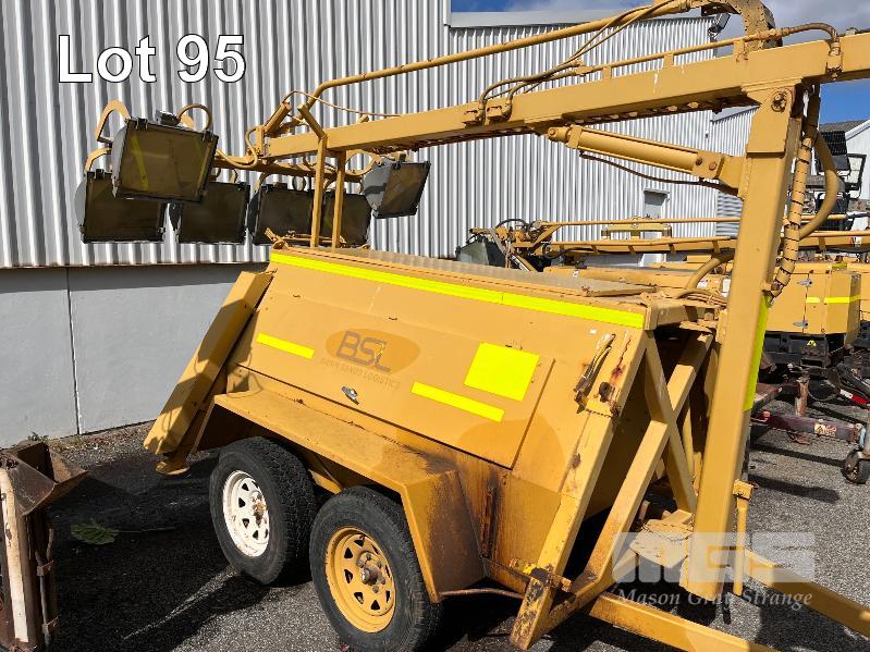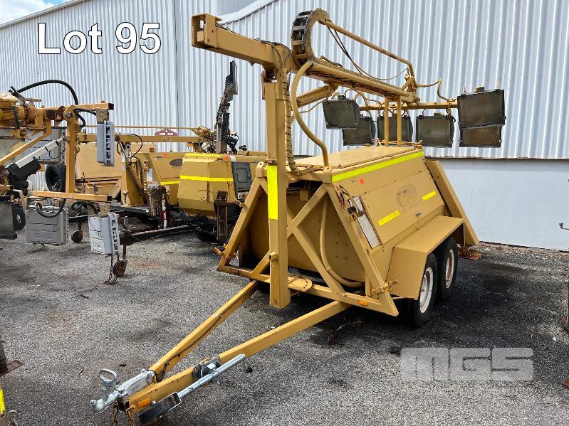 LIGHTING TOWER TRAILER, DUAL AXLE, 6 STUD RIMS, HYDRAULIC BOOM LIFT, NO ENGINE, NO HYDRAULIC PUMP, WITH ALTERNATOR TRAILER ONLY, 50mm COUPLER, JOCKEY WHEEL, ALL FAULTS