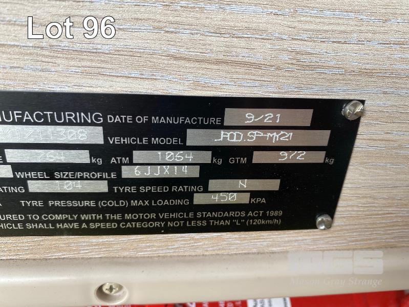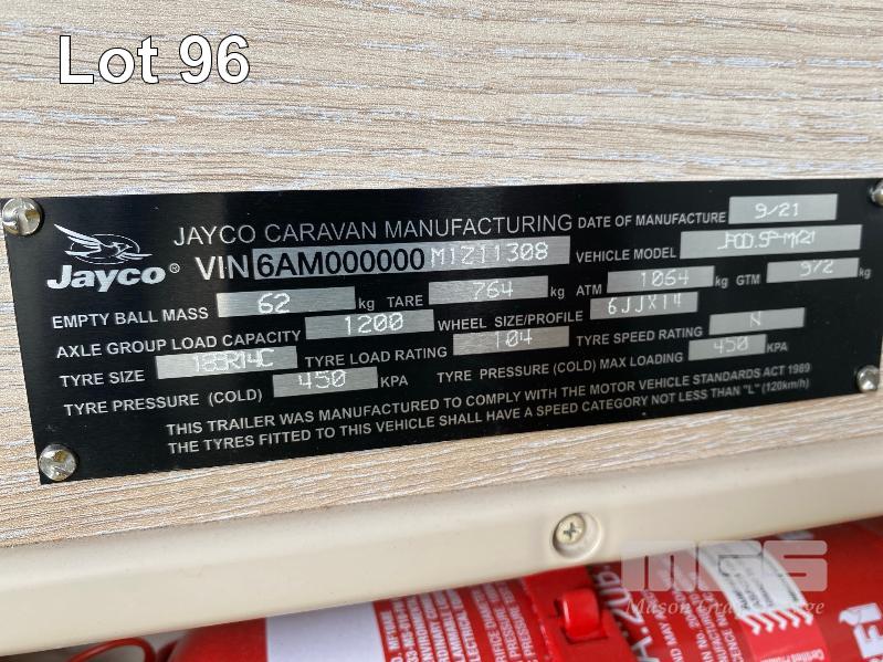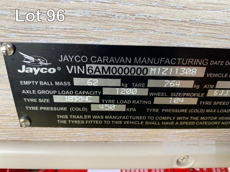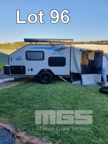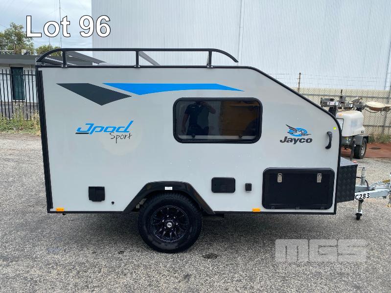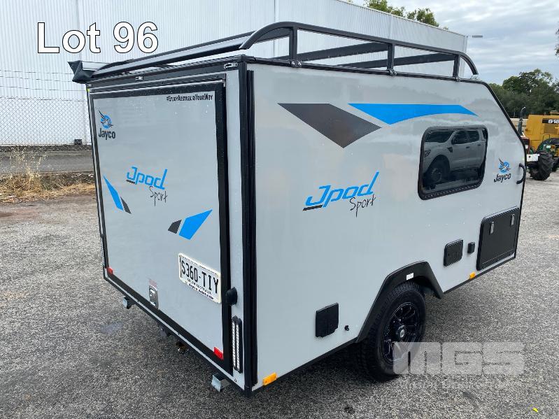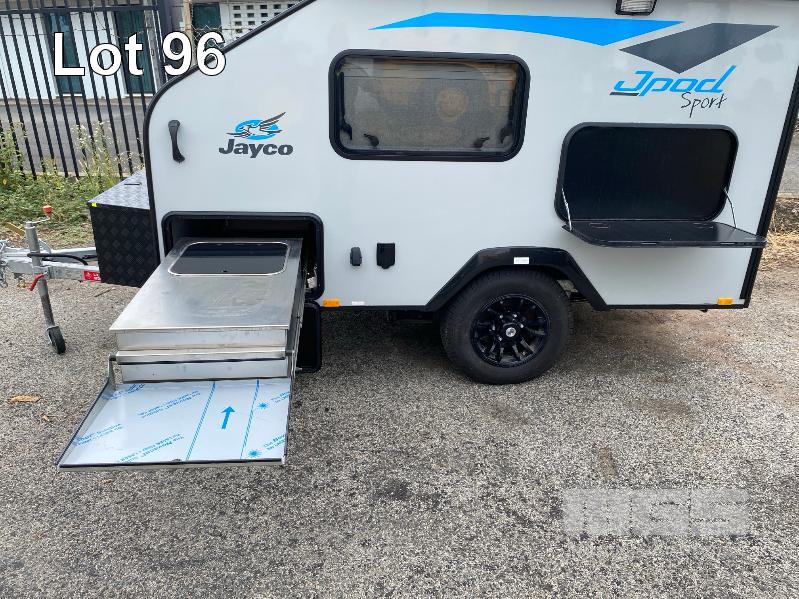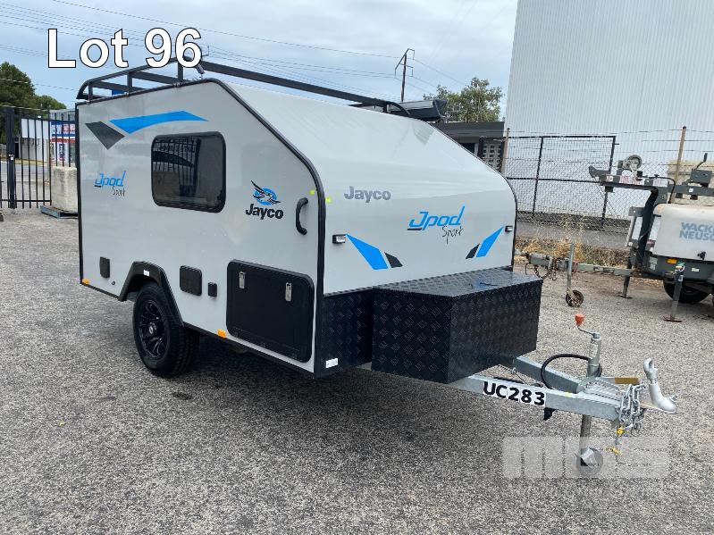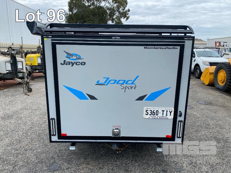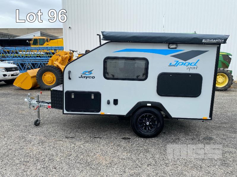 2021 JAYCO J-POD SPORTS CAMPER 2.8m (9.2') REG: S360 TIY (SA) VIN: 6AM000000M1Z11308 SINGLE AXLE, BALL HITCH BLACK, GREY & BLUE DUCO DOUBLE BED, LED LIGHTING, SKYLIGHT/HATCH, SLIDE OUT KITCHEN AREA, 12V PUMP TO SINK ANNEX BAG AWNING, BATTERY WITH MANAGEMENT SYSTEM FRONT MOUNT TOOL,BOX, GAS BOTTLE, WATER TANK, ELECTRIC BRAKES, ROOF RACKS, SPARE WHEEL, TARE: 764kg ATM: 1,064kg WITH BOOKS & REG PAPERS KEY #10