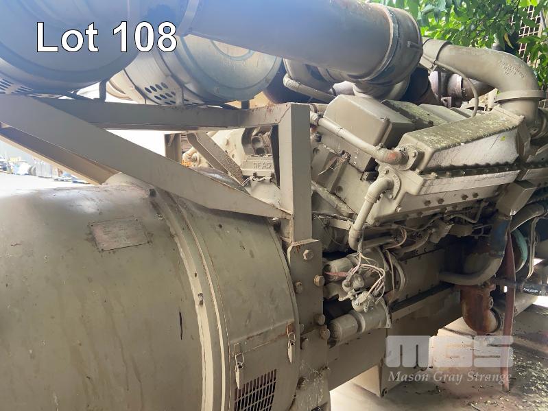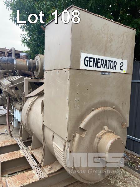 CUMMINS GENSET, CIRCA 1986/1987, CUMMINS V12 DIESEL, MOD: KTTA-36-G, 4 x TURBOS, ENGINE NO. 33110460, GENERATOR: J8741, SC734A, 1080KVA, 50 CYCLE, 3 PHASE, 415/460V @ 1503/1356 STAR ON SKID BASE WITH BELLY TANK