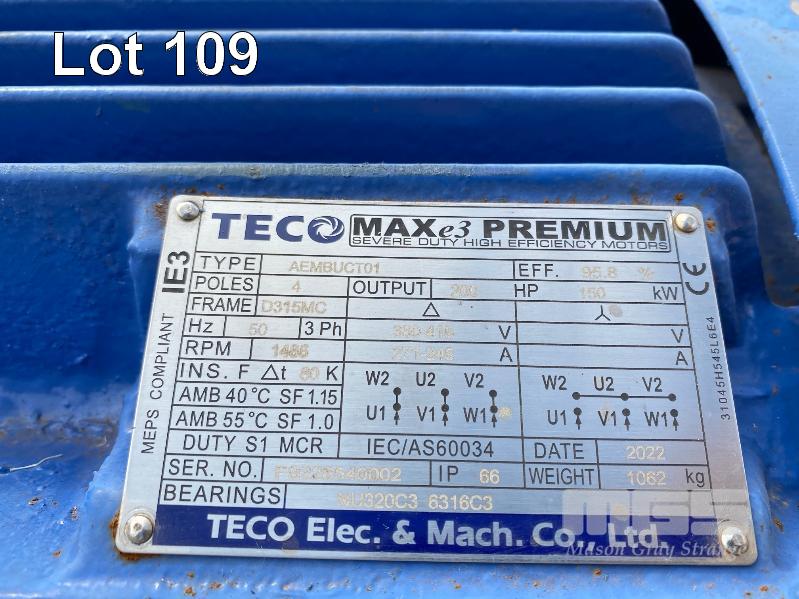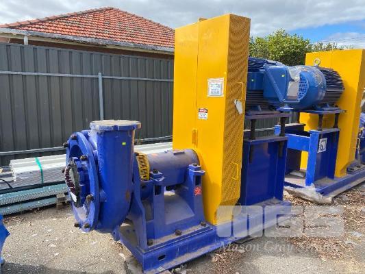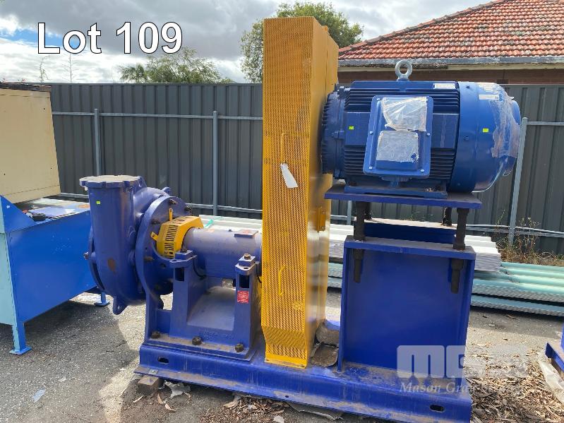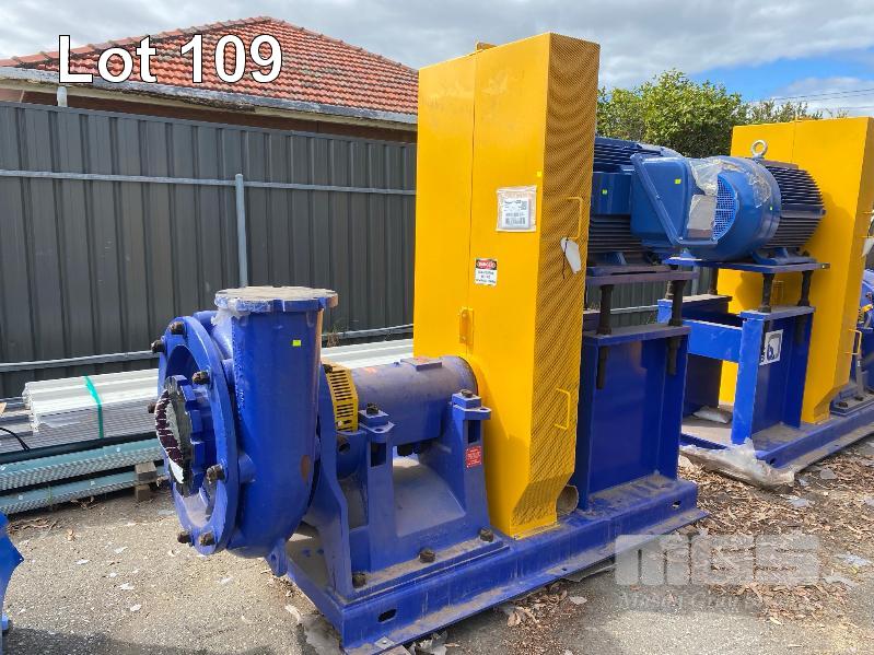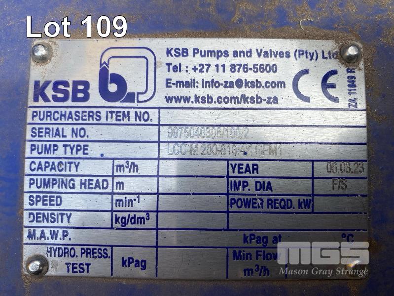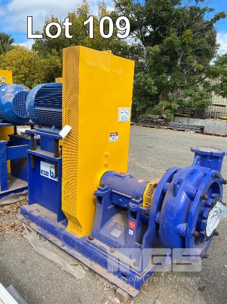 SLURRY PUMP, KSB MODEL: LCC M200-610.4K GFM1 DOM: 2023 HI CHROME WHITE IRON WET END, MECHANICAL SEAL BELT DRIVEN VIA TECO ELECTRIC MOTOR, 150Kw, 415V TYPE: AEMBUCT01 MOUNTED TO STEEL BACK PLATE WITH ENCLOSED BELT & DRIVE GUARDS (AS NEW) PUMP SPECS FLOW - 750m3/Hr HEAD - 47m SPEED - 903 RPM NPSHA - 6.0m NPSHR - 2.7m *** FOR DETAILED SPEC SHEET REFER PDF ATTACHED ***