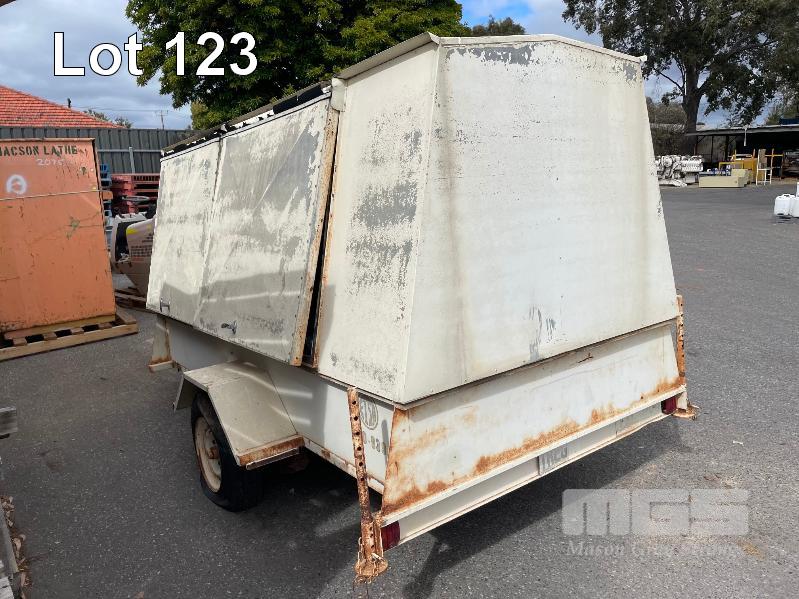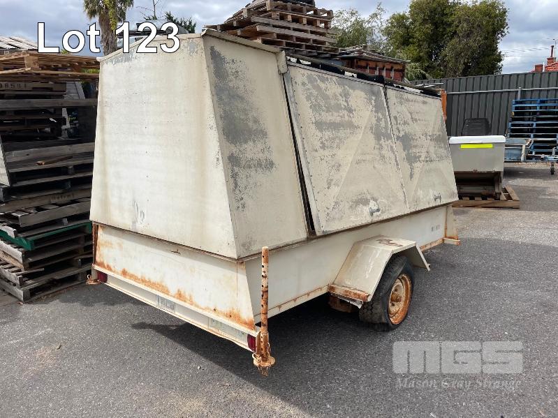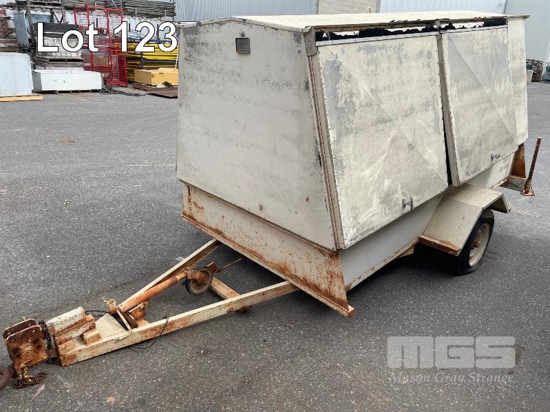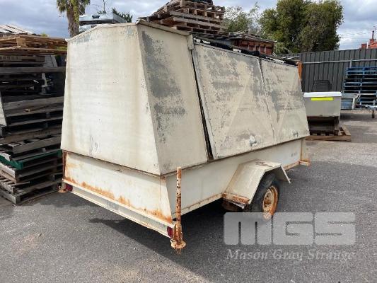 SINGLE AXLE 8x5 TRADESMANS TRAILER, 4 x ACCESS DOORS, RING COUPLER, POOR CONDITION, RUST EVIDENT, TYRES DEAD, NO VIN