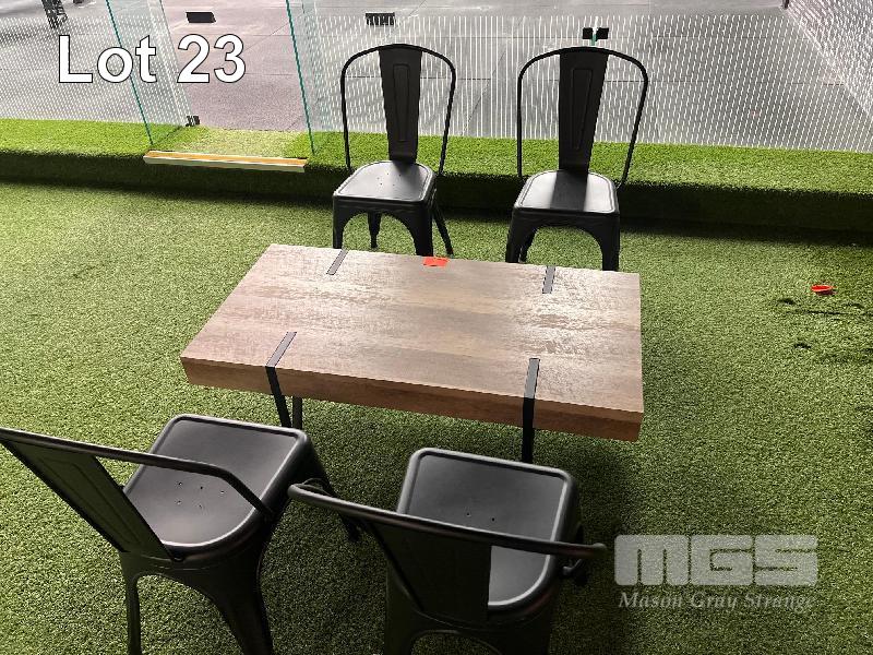 COFFEE TABLE, 1200 x 600mm & 4 x STEEL CHAIRS, BLACK