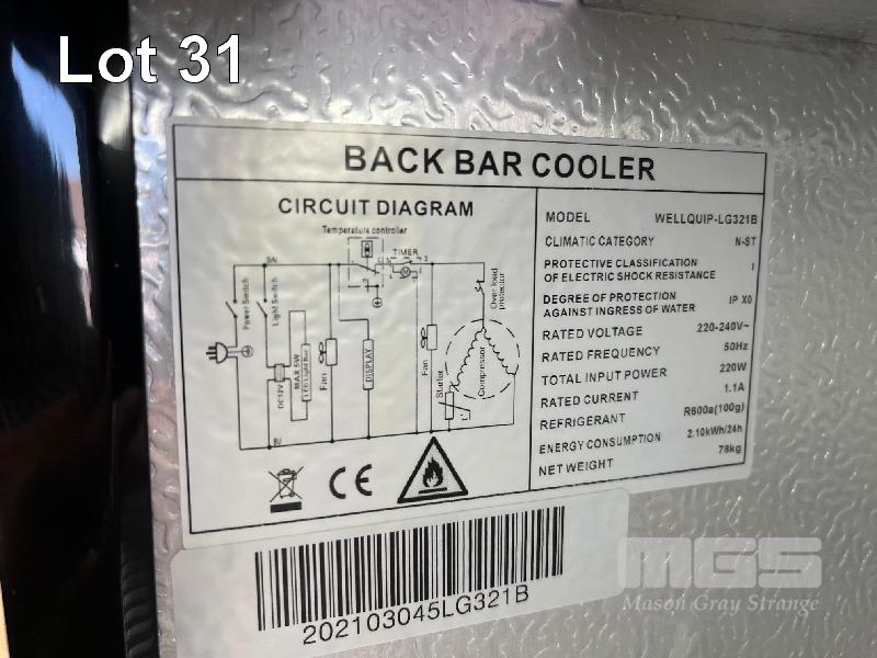 UNDER BENCH GLASS DISPLAY FRIDGE, WELLQUIP MOD: WELLQUIP-LG321B, 3 DOOR, 240V