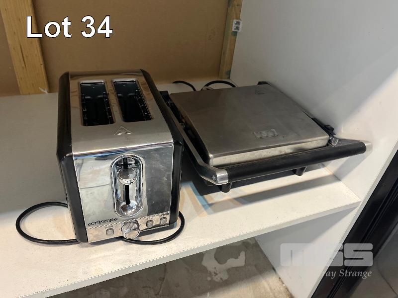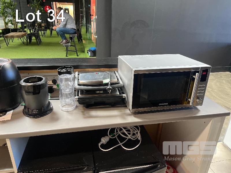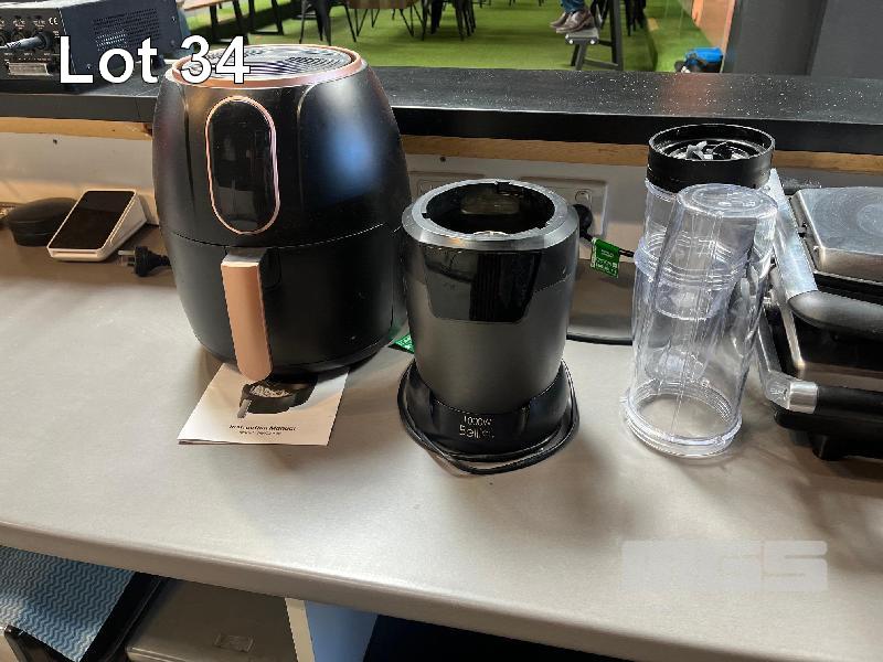 KOGAN BAR FRIDGE, BLACK, APPROX 43L, CONTEMPO MICROWAVE, 3 x SANDWICHES PRESS, 1 x TOASTER, BLENDER & AIRFRYER