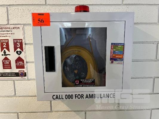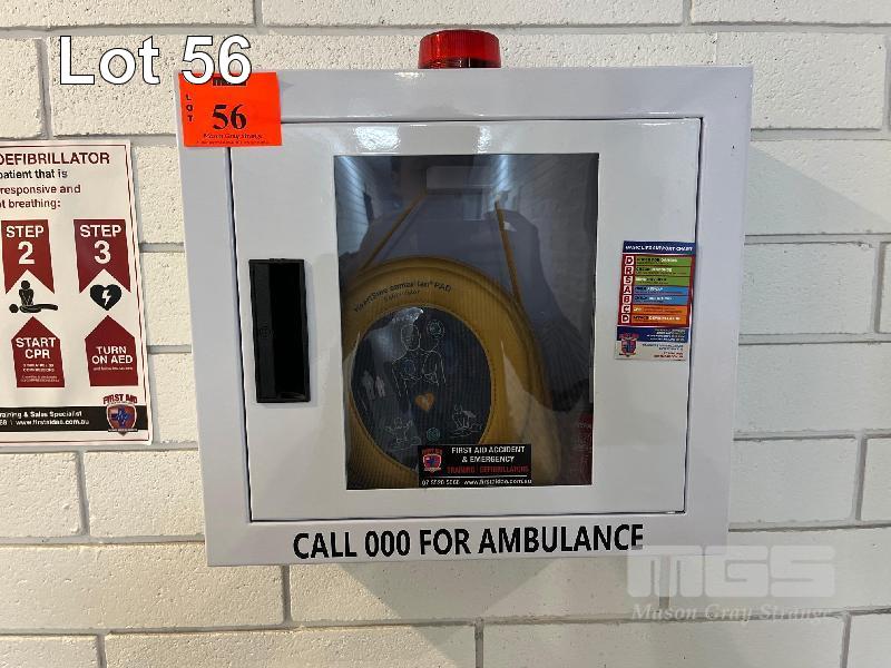HEARTSINE SAMARITAN DEFIB WITH WALL MOUNT CABINET & FIRST AID KIT IN CARRY BAG