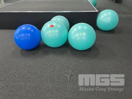 5 x GYMBALLS, ASSORTED COLOURS & SIZES