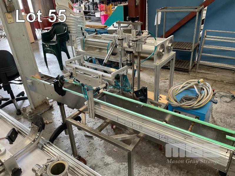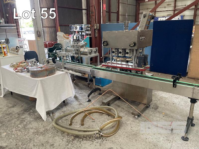 BOTTLING LINE COMPRISING OF: TIRELLI MINIBLOC BOTTLE FILLING STATION, MODEL: EM3 N1 (ORIGINAL SUPPLIED COST: $129,933 + GST) BOTTLE CAPPING UNIT, INCLINE CONVEYOR, DIGITAL DISPLAY CONTROLLER WITH ES, COMPAIR REFRIGERANT AIR DRYER, MODEL: F7C 6m CONVEYOR LINE ROTATING PRODUCT TABLE NOTE: BOTTLING LINE HAS BEEN DECOMISSIONED PLEASE INSPECT BEFORE BIDDING VIDEO FOOTAGE OF BOTTLING LINE IN OPERATION AVAILABLE UPON REQUEST
