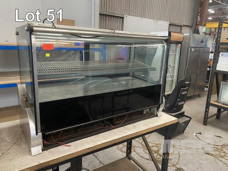 COUNTER TOP CAKE DISPLAY, ANVIL-AIRE 120cm, 240V NOTE: CRACKED INTERNAL GLASS