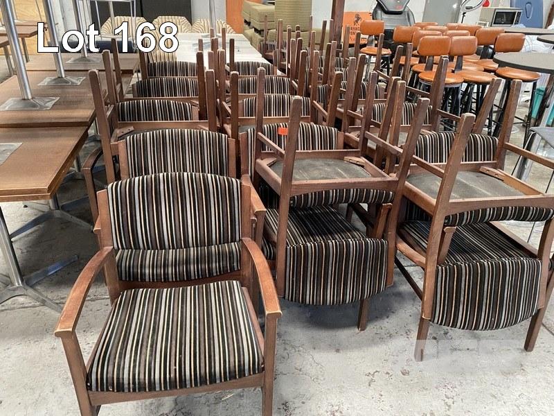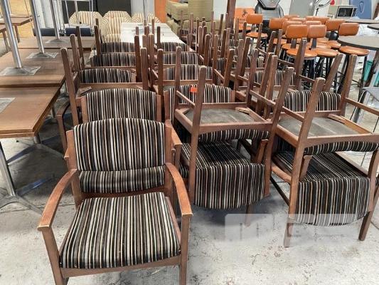 30 x DINING CHAIRS, STRIPED FABRIC, TIMBER FRAME